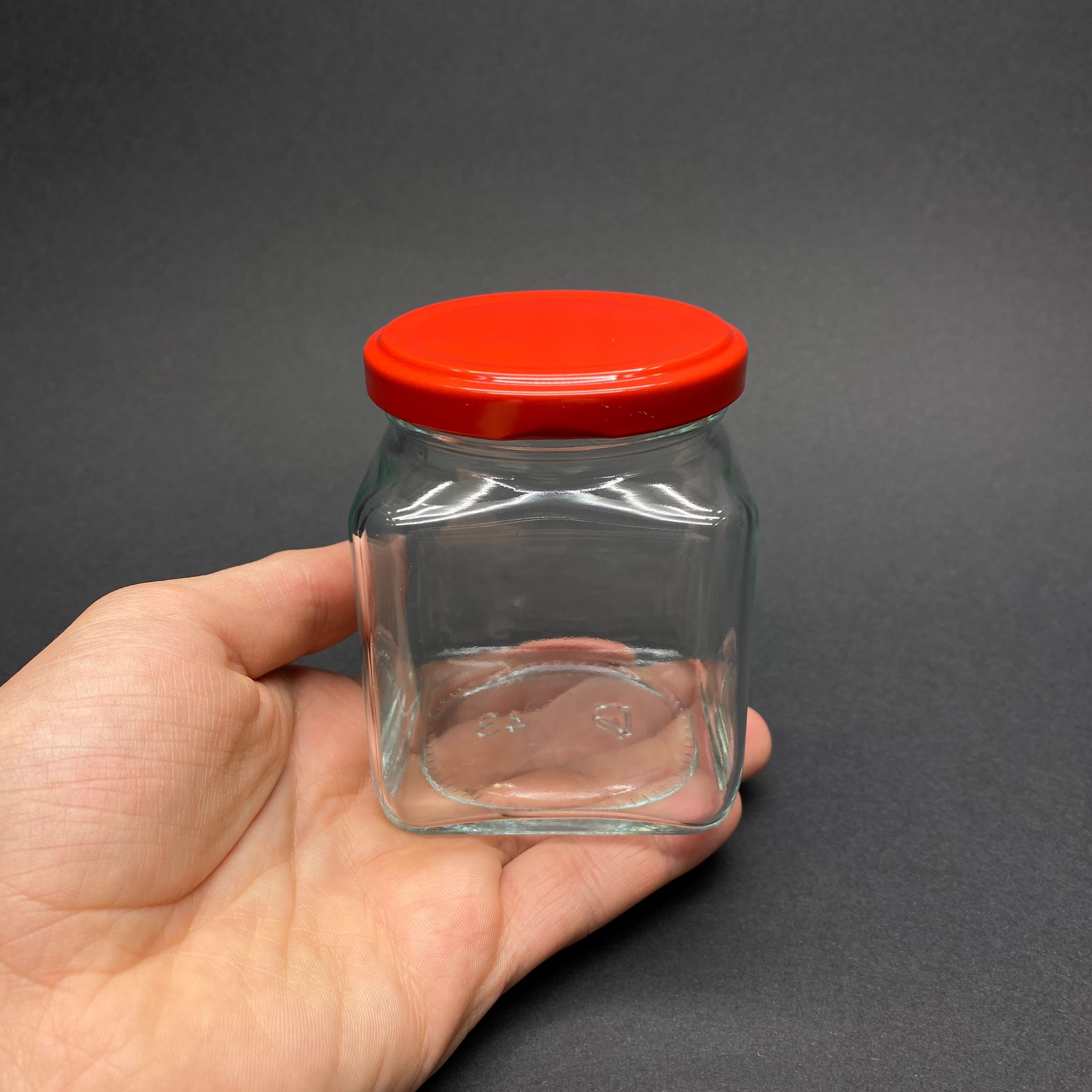 250 CC CAM KARE KAVANOZ - KIRMIZI KAPAKLI - 250 ML KÖŞELİ KAVANOZ