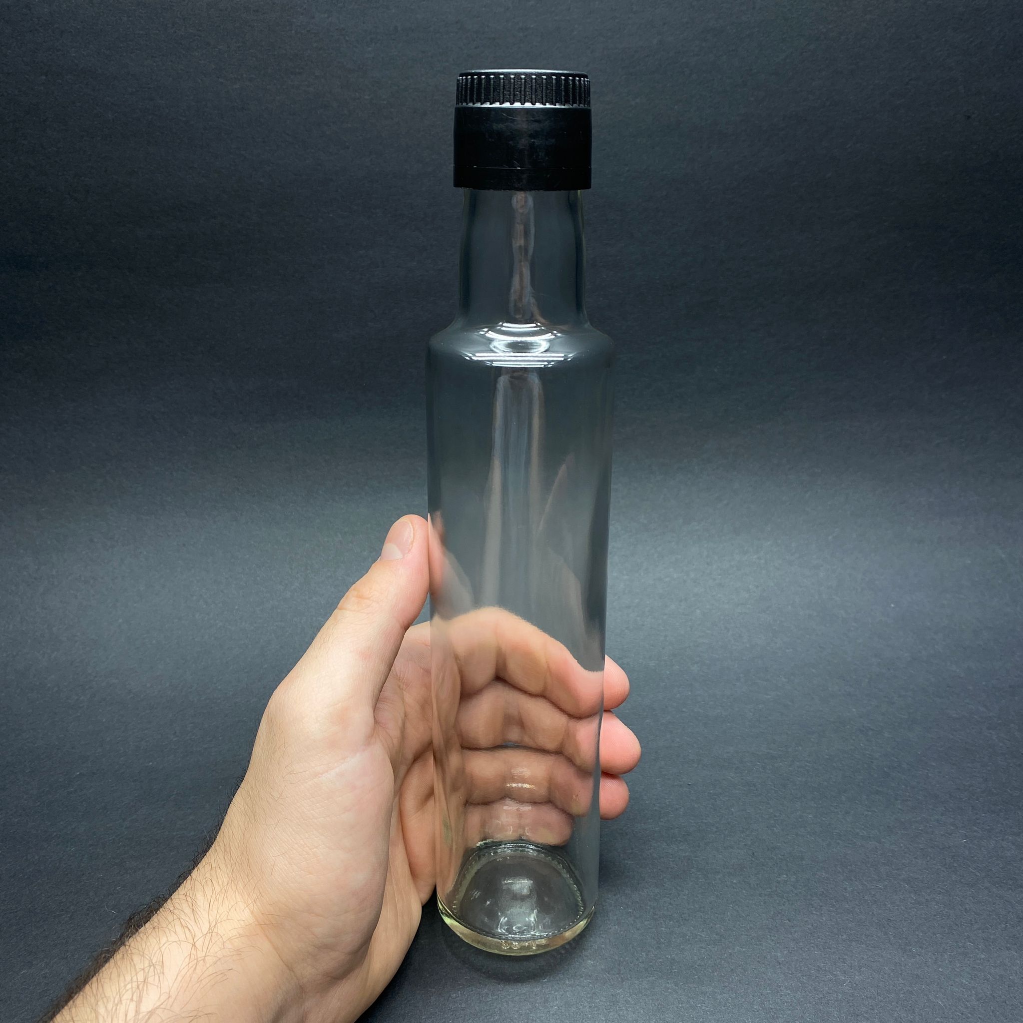 250 CC DORİKA CAM ŞİŞE - SİYAH KİLİTLİ DROP - STOP AKITICILI KAPAKLI - 250 ML ŞEFFAF DORİKA ŞİŞE