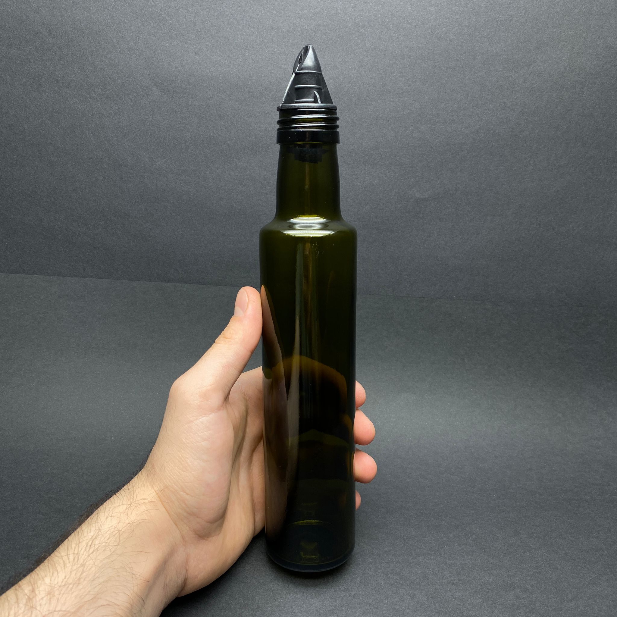 250 CC DORİKA YEŞİL CAM ŞİŞE - SİYAH PLASTİK YAĞDANLIK TIPALI - 250 ML YAĞ ŞİŞESİ - SİRKE ŞİŞESİ