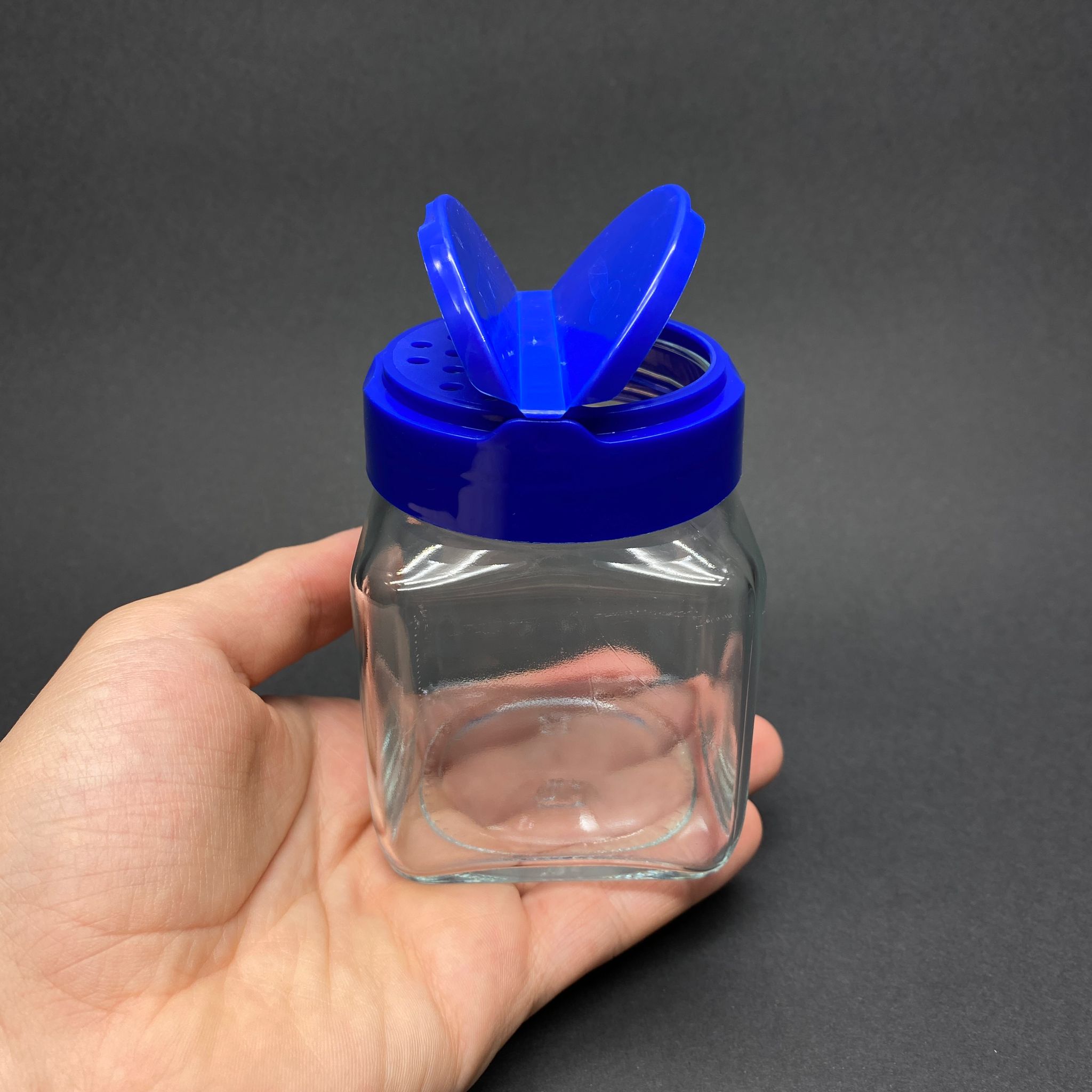 250 CC KARE CAM BAHARATLIK KAVANOZ - 250 ML KÖŞELİ BAHARAT KAVANOZU - MAVİ AÇILIR KAPANIR KAPAKLI