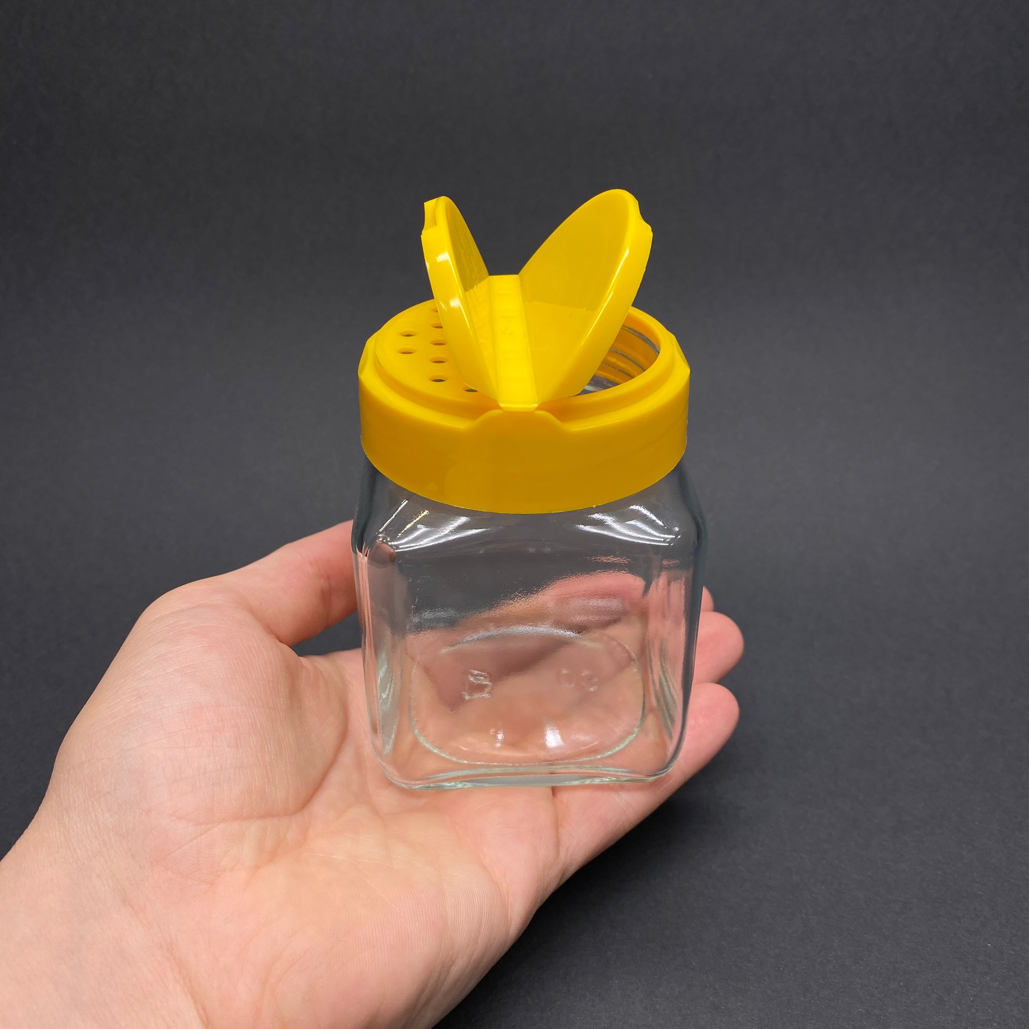 250 CC KARE CAM BAHARATLIK KAVANOZ - 250 ML KÖŞELİ BAHARAT KAVANOZU - SARI AÇILIR KAPANIR KAPAKLI