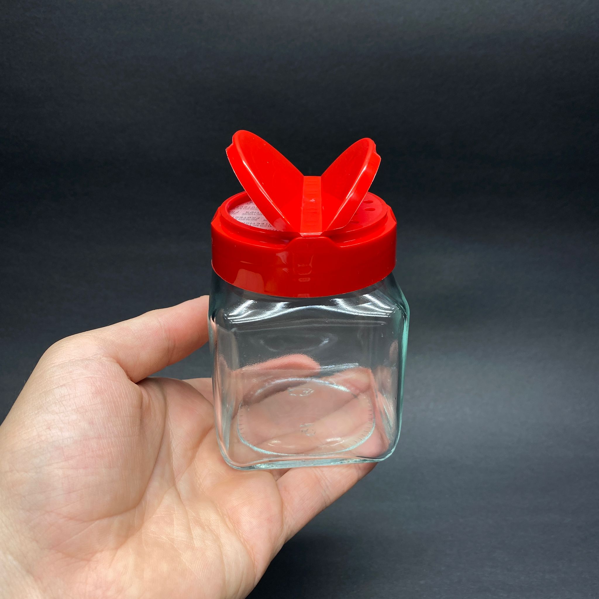 250 CC KARE MODEL CAM BAHARAT KAVANOZU - KIRMIZI FLİPTOP BAHARAT KAPAKLI + SIZDIRMAZ KENDİNDEN YAPIŞKANLI KÖPÜK CONTALI - toz kavanozu , baharat ambalajı , boş pudra şişesi . tuzluk , baharat düzenleyici set için kavanoz