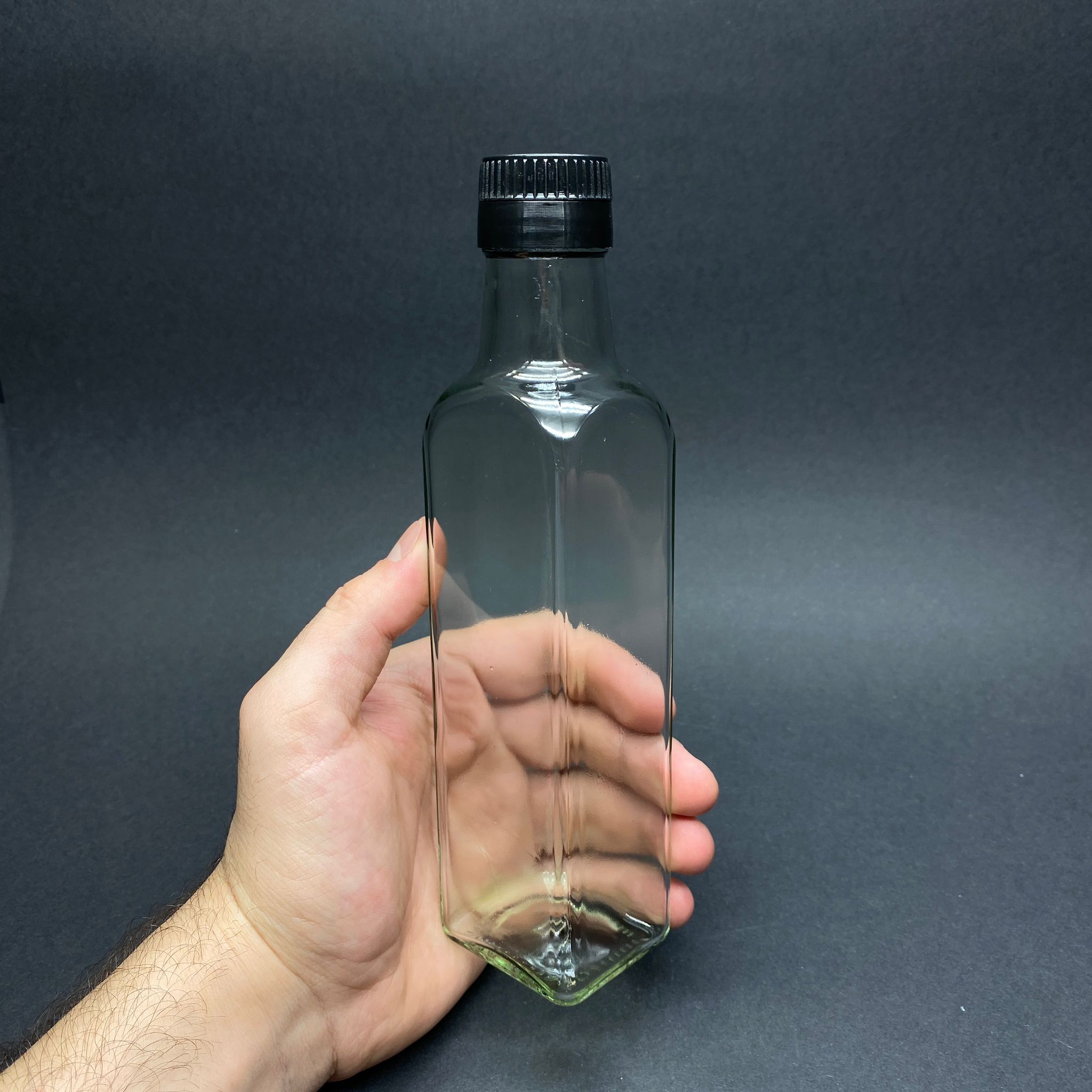 250 CC KÖŞELİ MARASKA CAM ŞİŞE - SİYAH KİLİTLİ ÇAKMA (GEÇME) KAPAKLI - 250 ML İTHAL MARASKA CAM ŞİŞE