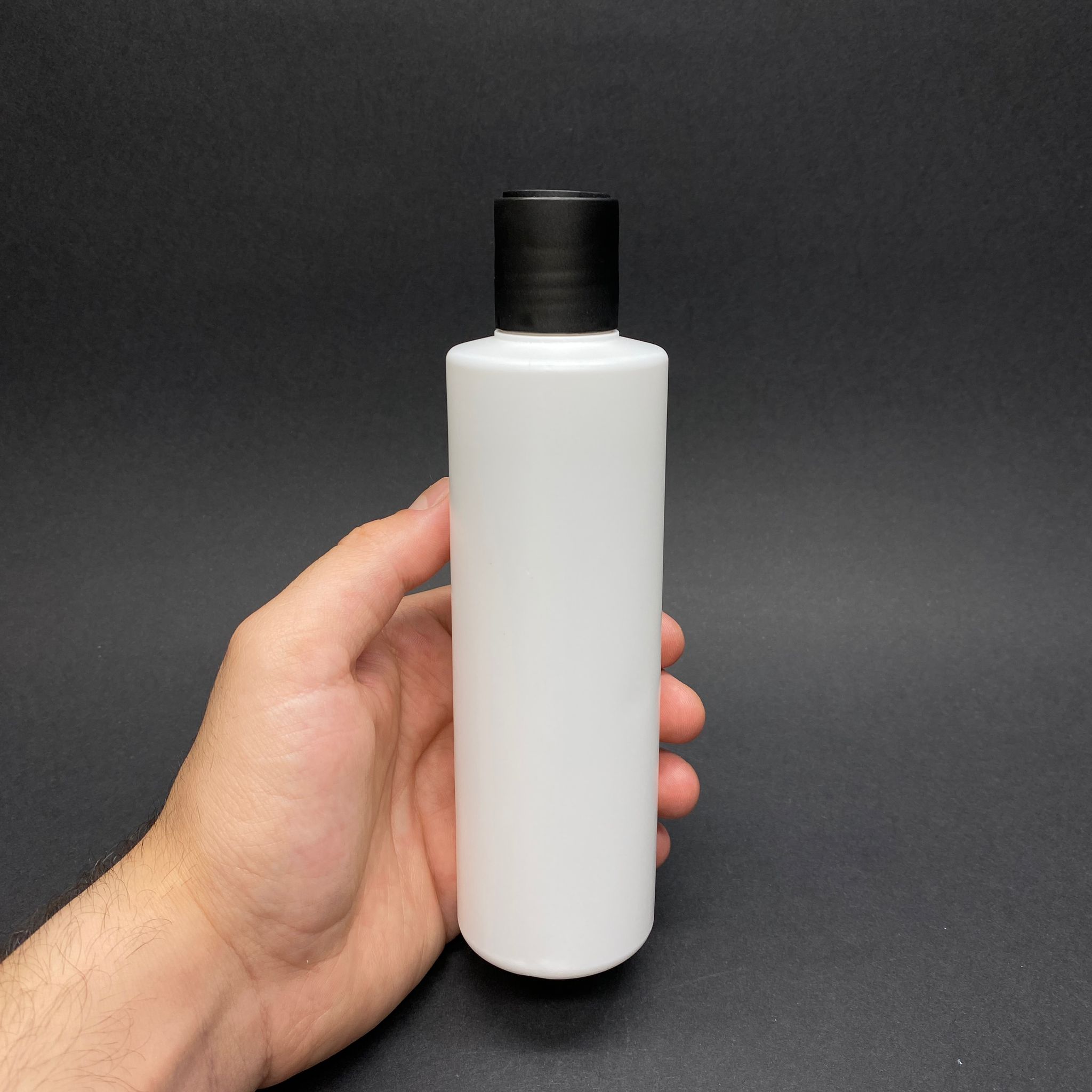 250 CC POLİETİLEN SİLİNDİR UZUN MODEL ŞAMPUAN ŞİŞESİ - BEYAZ - SİYAH DİSKTOP KAPAKLI - 250 ML BOŞ PLASTİK ŞAMPUAN ŞİŞESİ