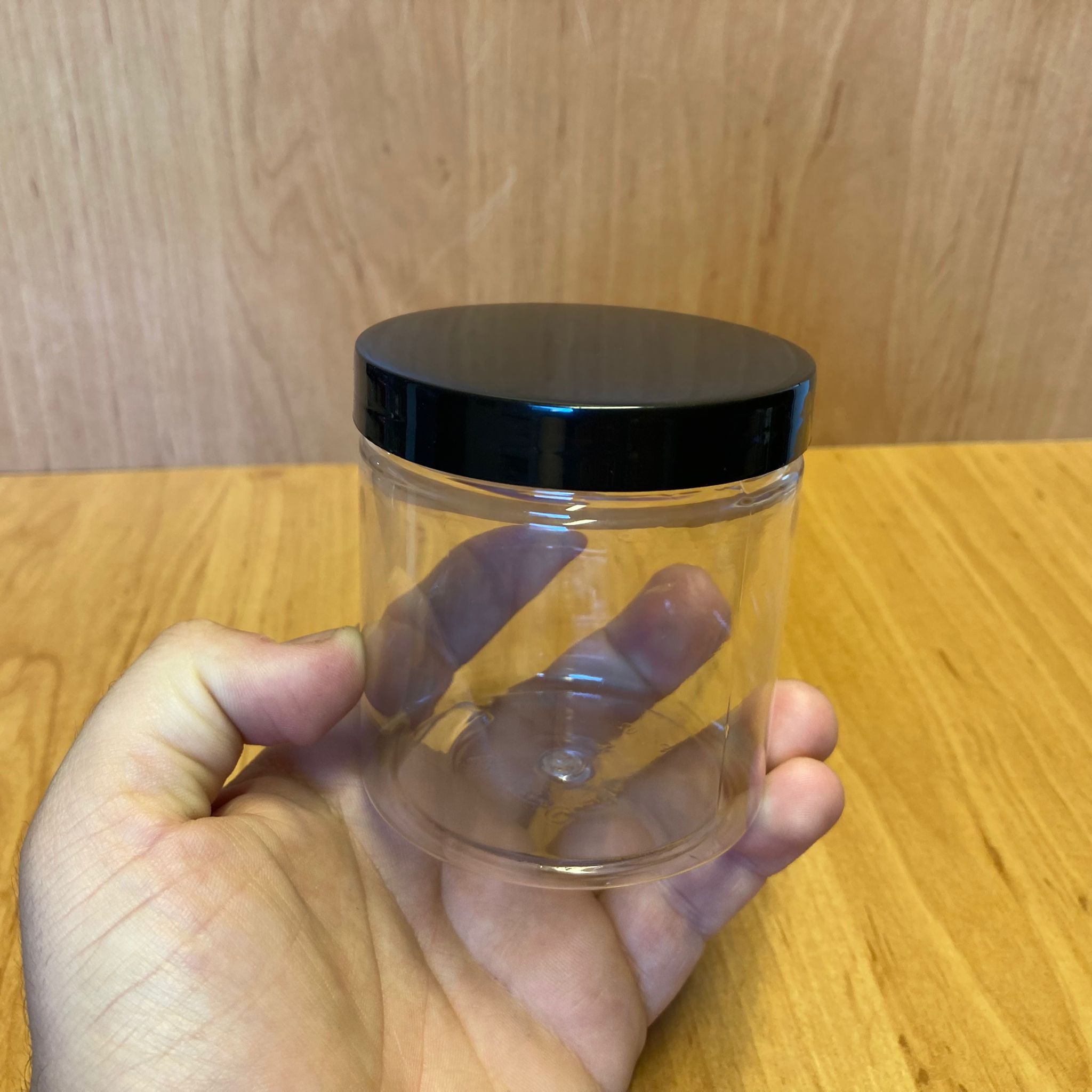250 CC ŞEFFAF SERT PLASTİK KAVANOZ - SİYAH KAPAKLI - 250 ML PLASTİK KREM KAVANOZU