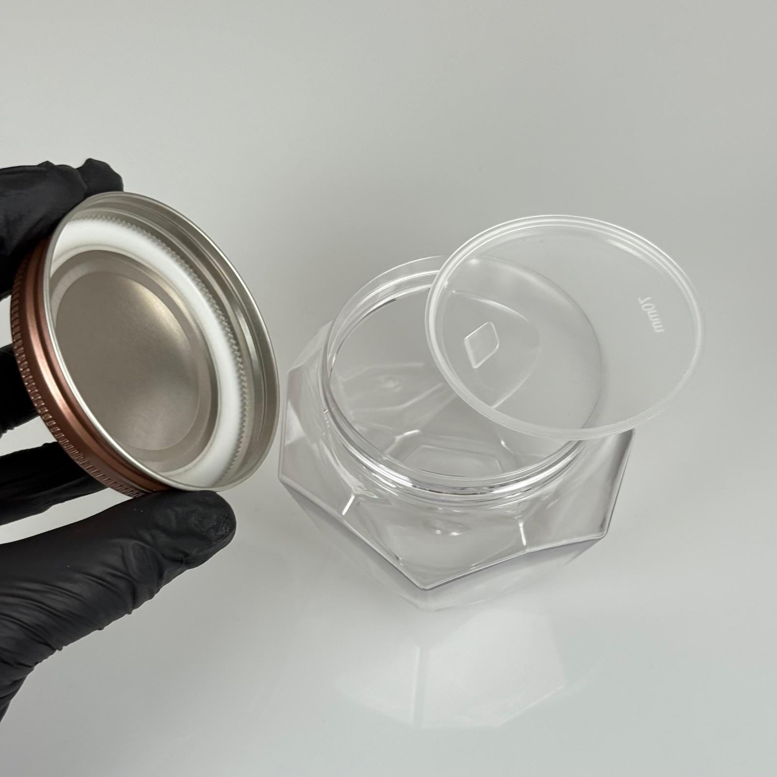 250 ML SERT PET ALTIGEN KAVANOZ + BRONZ METAL KAPAK + İÇ TIPA - 250 CC KALIN ŞEFFAF PLASTİK KAVANOZ BRONZ METAL KAPAKLI İÇ TIPALI TAKIM - KREM KAVANOZLARI
