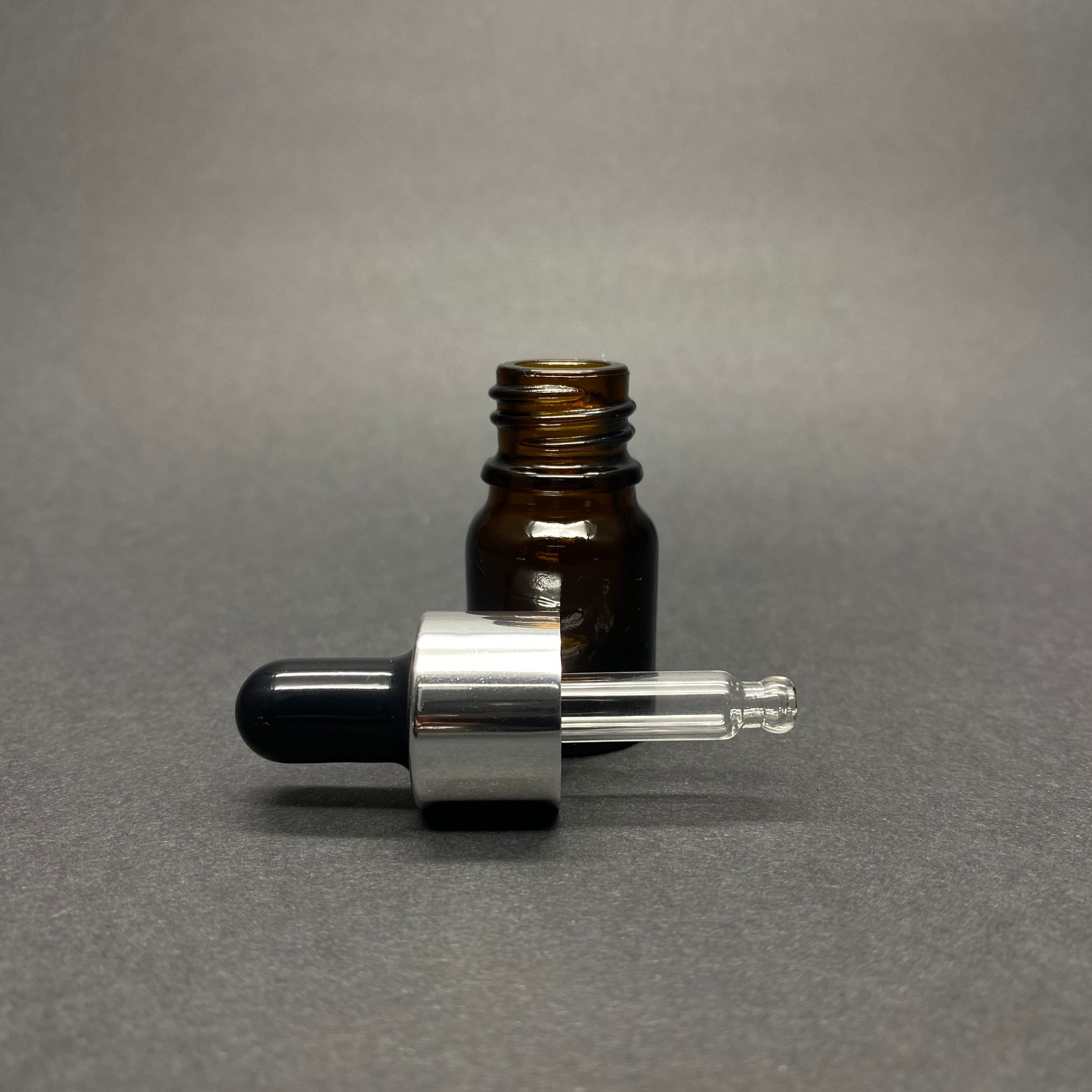 3 CC AMBER CAM DAMLALIKLI ŞİŞE - SİYAH EMZİK - GÜMÜŞ METALİK KAPAK - 3 ML KAHVERENGİ CAM DAMLALIKLI ŞİŞE