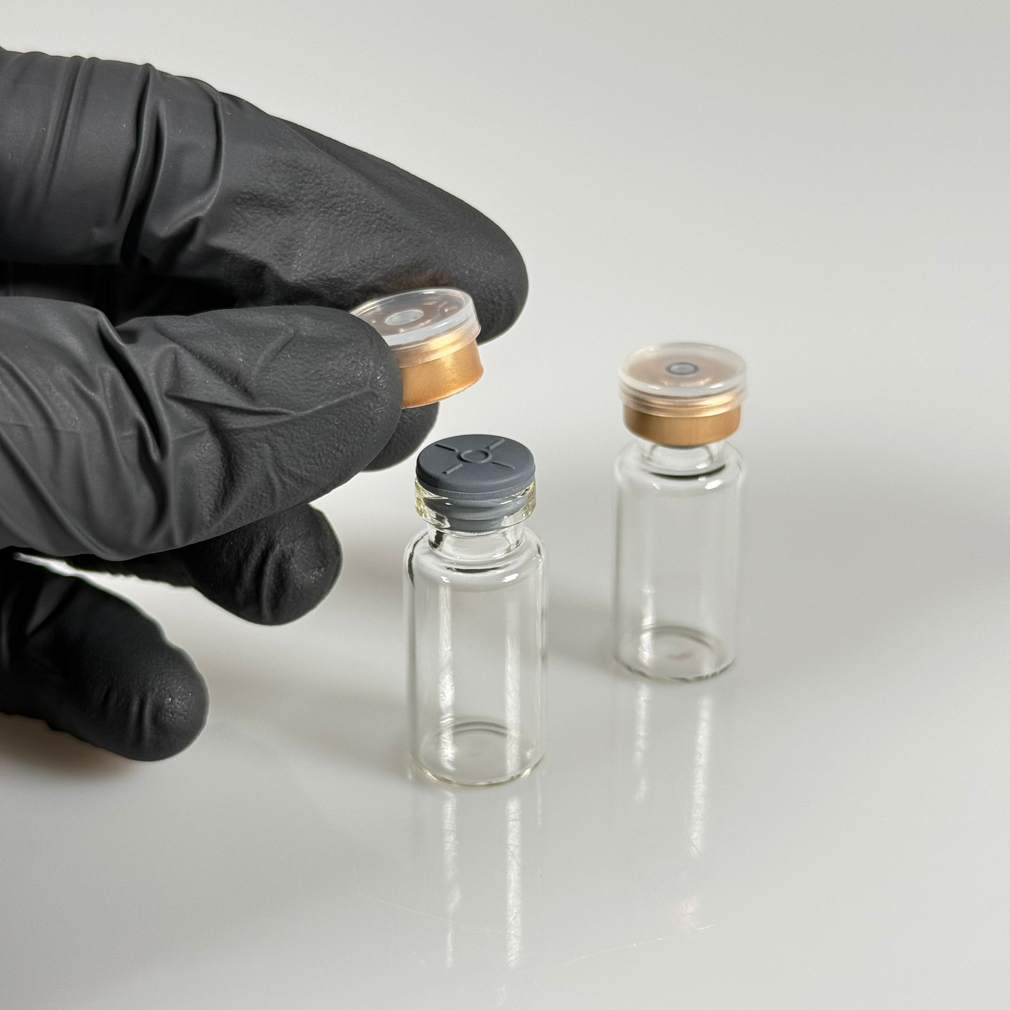 3 ML vial flakon şişe - 13 ağız 3 cc şeffaf cam ilaç şişesi + kauçuk butil enjektör tıpası + gold alüminyum kapaklı takım