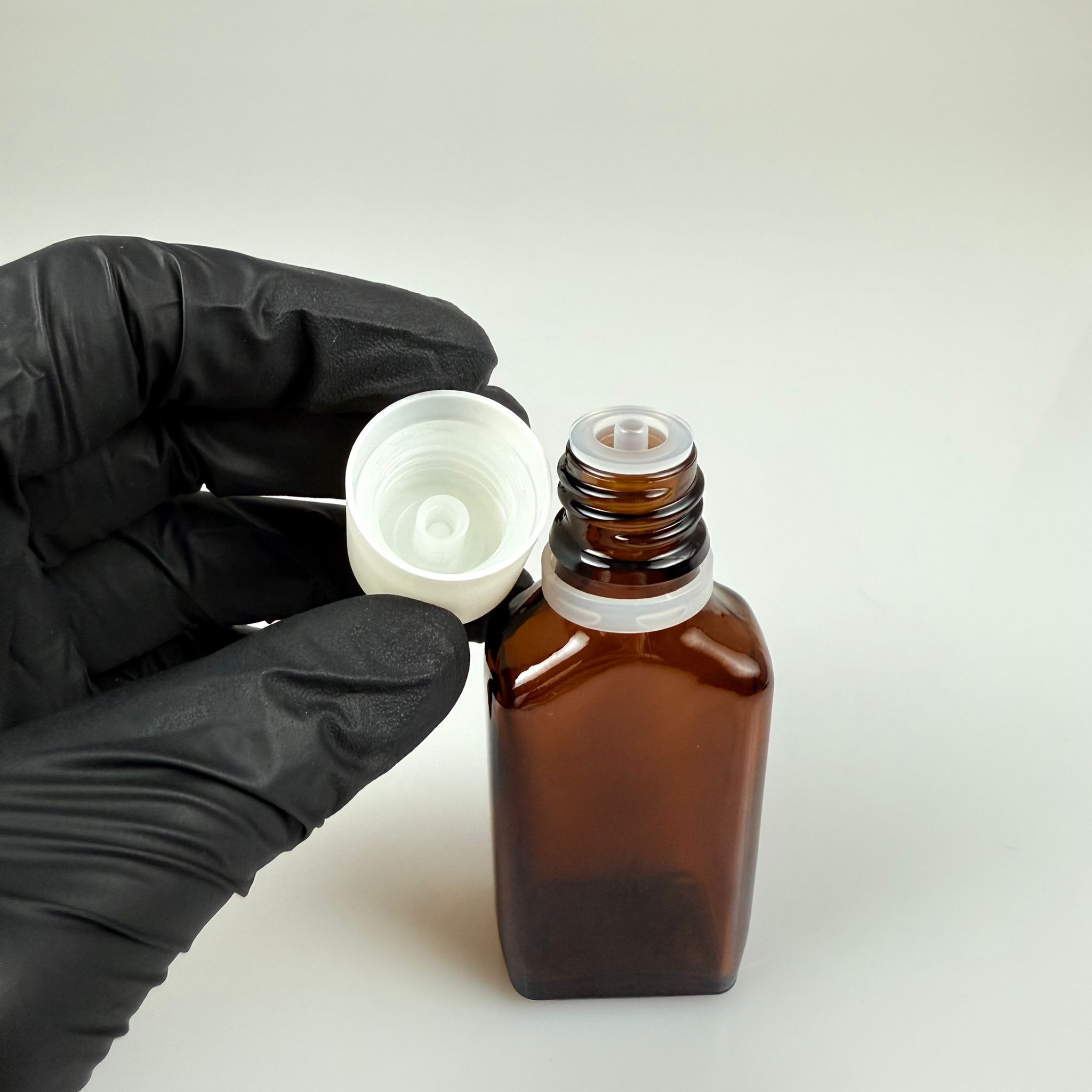 30 CC AMBER YASSI CAM ŞİŞE + İÇTEN DAMLALIKLI ÇOCUK KİLİTLİ BEYAZ KAPAK - KAHVERENGİ 30 ML KİLİT KAPAKLI DAMLATMALI ŞİŞE