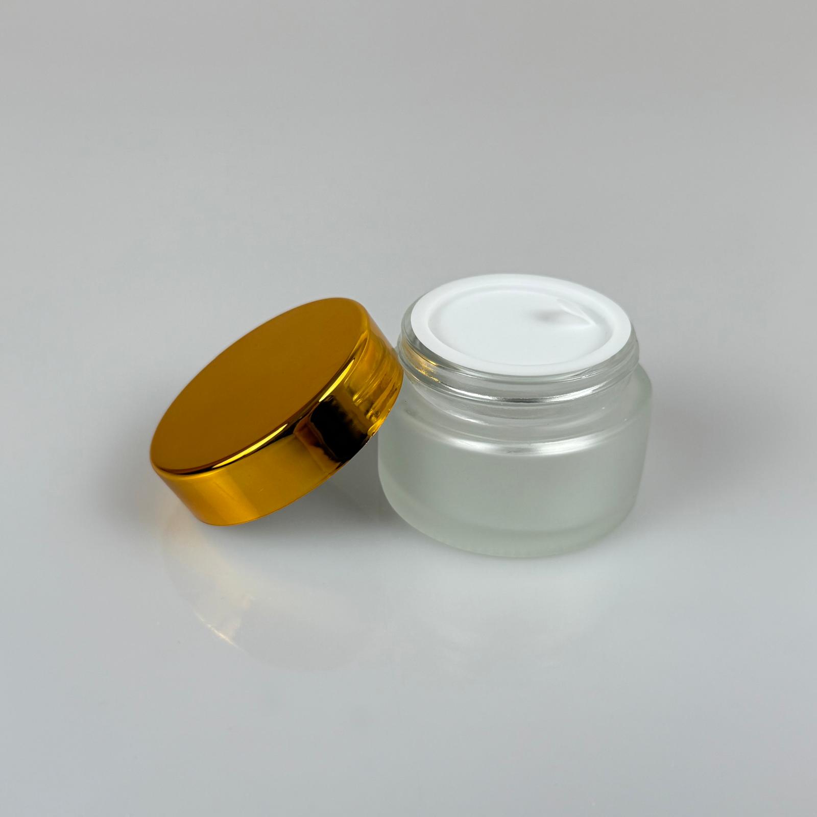 30 CC CAM BUZLU KREM KAVANOZU - GOLD KAPAKLI İÇ CONTALI - 30 ML BUZLU CAM KREM KAVANOZU - BUZLU MUM KAVANOZU