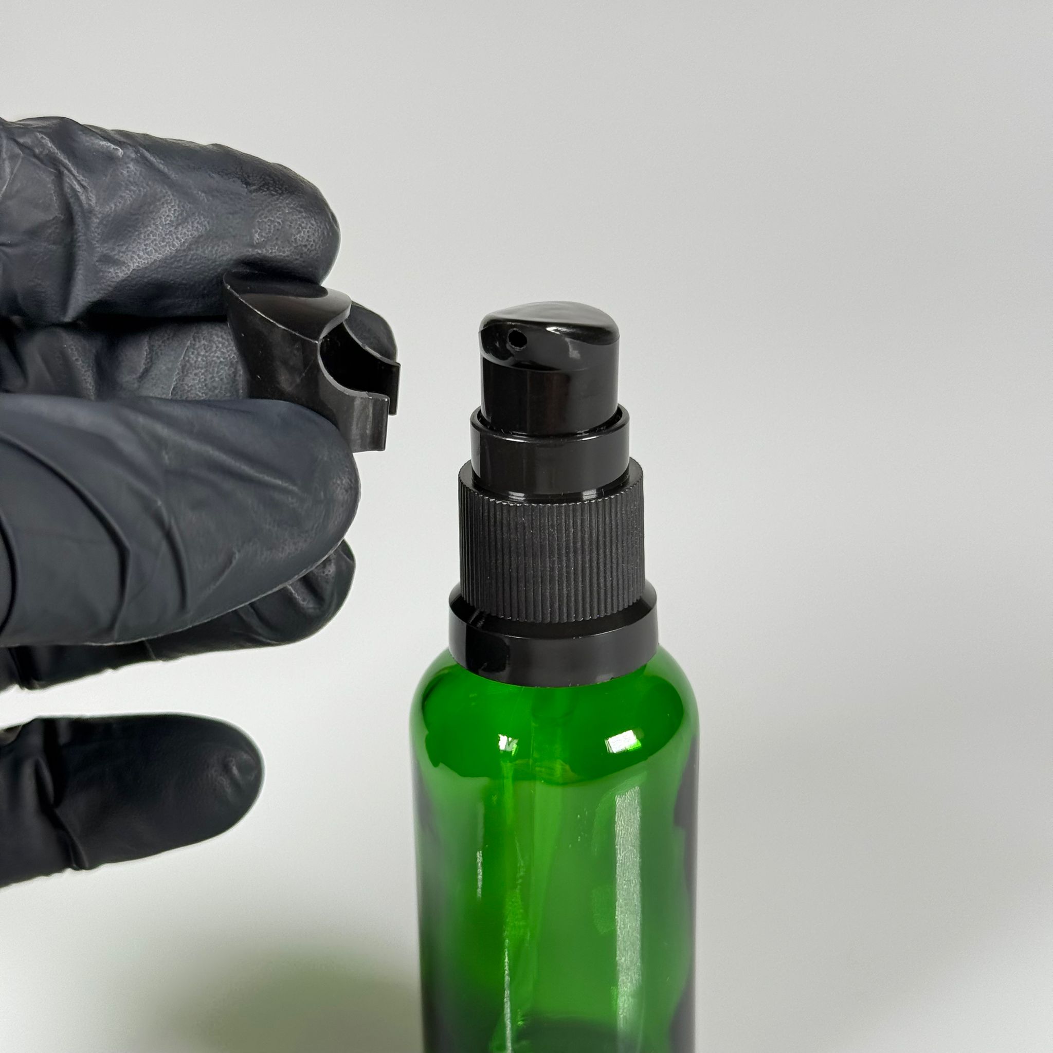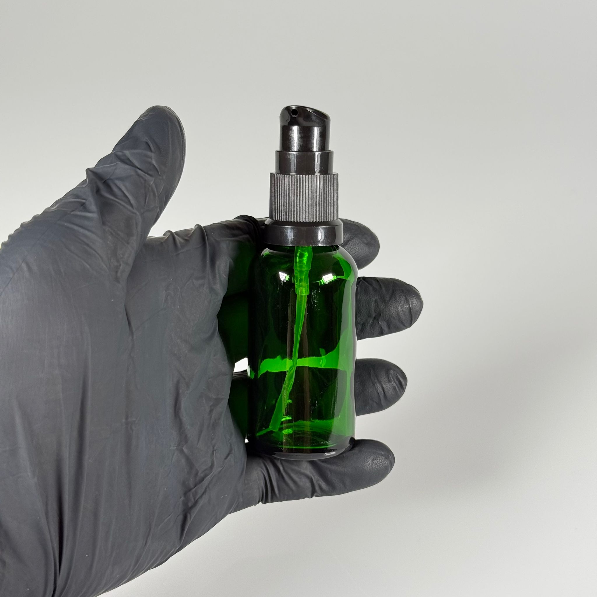 30 CC YEŞİL CAM ŞİŞE - SIZDIRMAZ ETEKLİ SİYAH LOSYON POMPALI TAKIM - 30 ML LOSYON ŞİŞESİ - YAĞ, KREM GİBİ YOĞUN KIVAMLI SIVILAR İÇİN CAM AMBALAJ