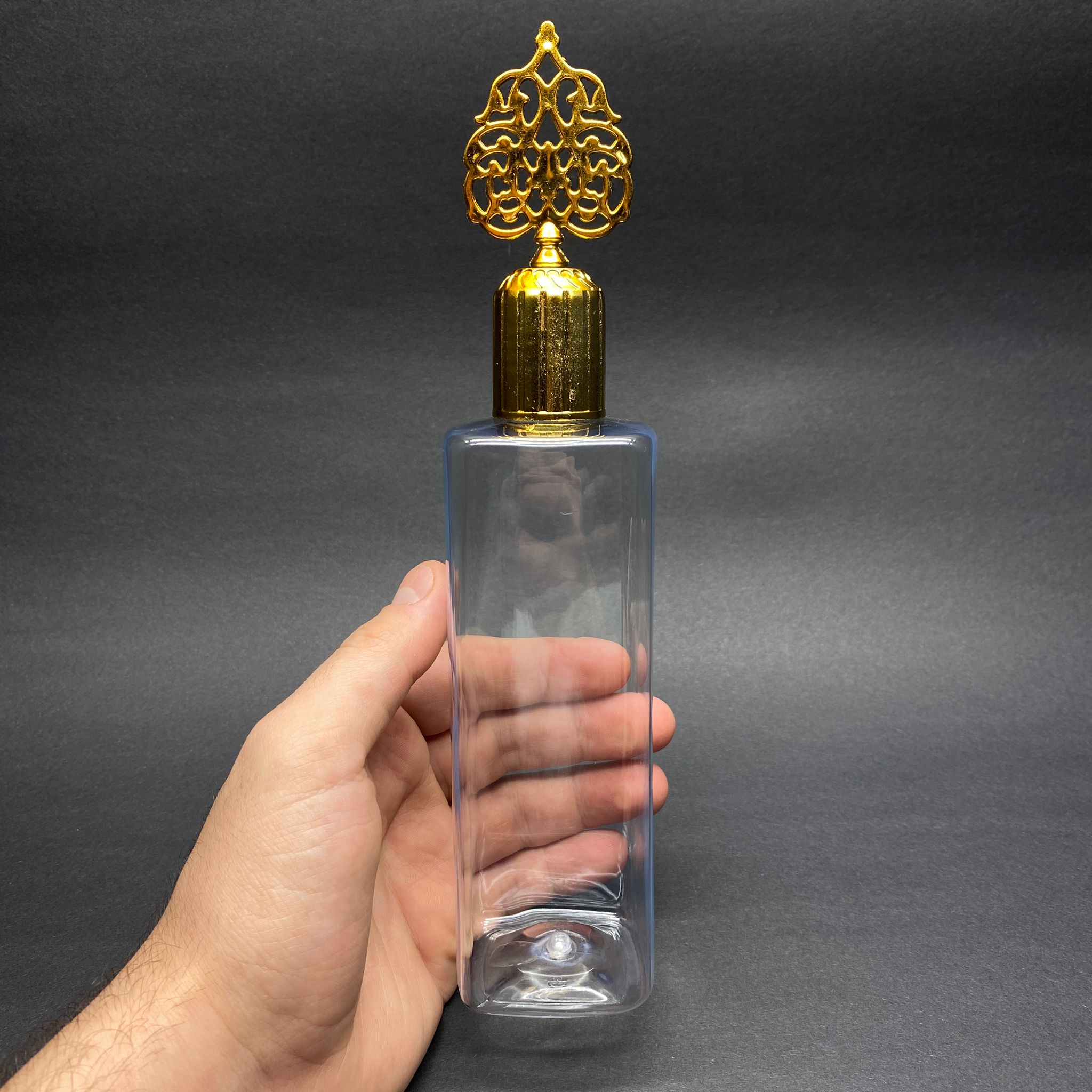 300 CC KARE PET ŞİŞE (31 GR) - GOLD OSMANLI KAPAKLI - 300 ML KÖŞELİ PLASTİK ŞİŞE