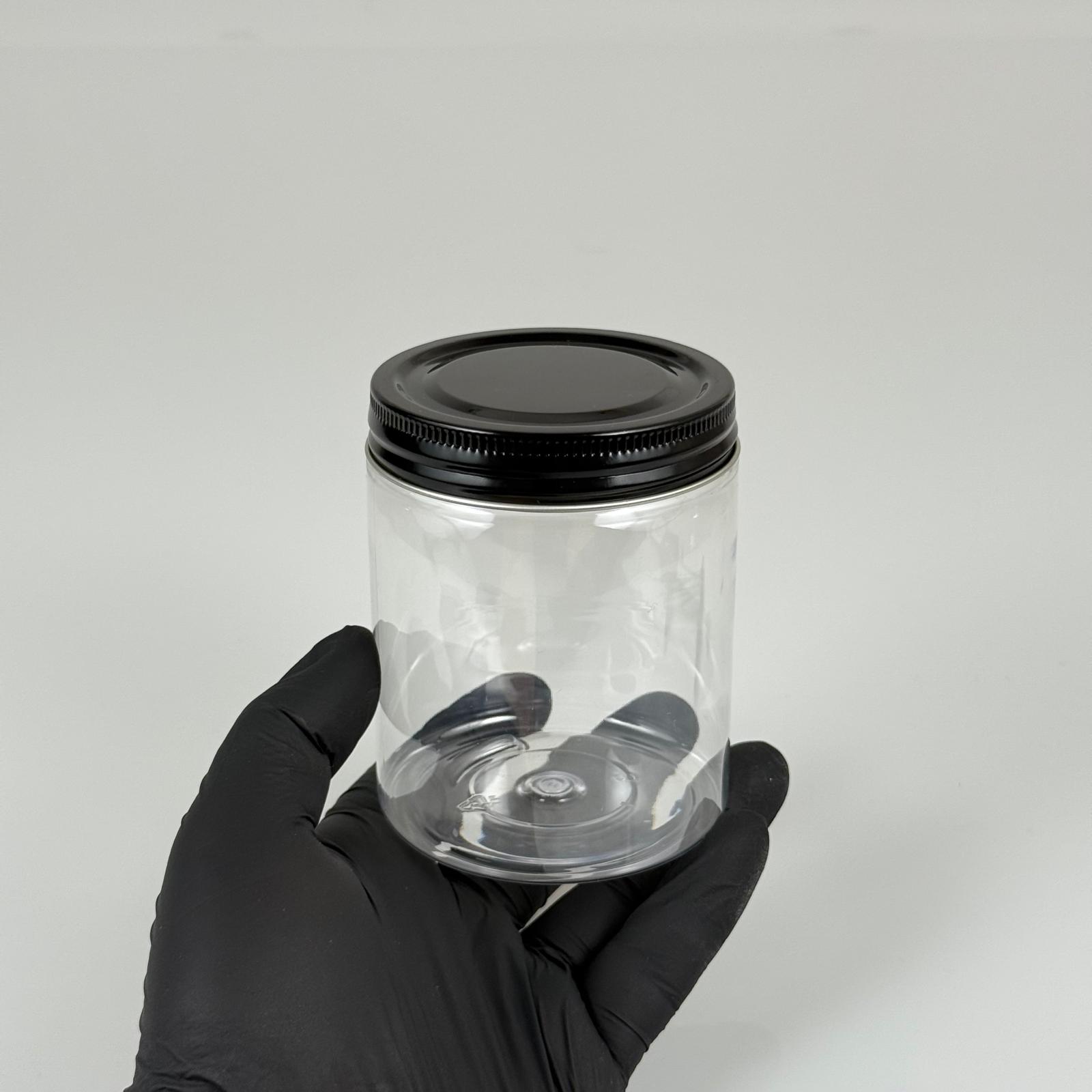 300 CC ŞEFFAF SERT PLASTİK KAVANOZ - SİYAH METAL KAPAKLI - 300 ML METAL KAPAKLI PLASTİK KAVANOZ - KOZMETİK KAVANOZ, GIDA KAVANOZU VE KREM KAVANOZU OLARAK KULLANABİLİRSİNİZ