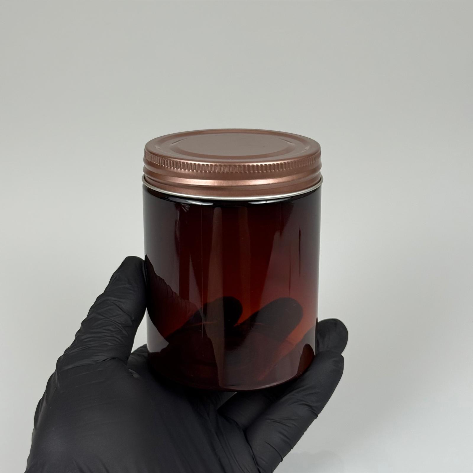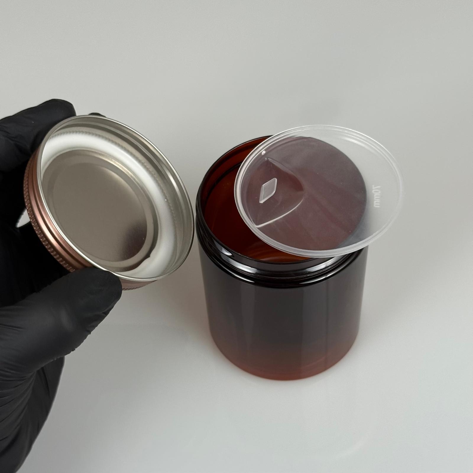300 ML SERT PET KAVANOZ + BRONZ METAL KAPAK + İÇ TIPA - 300 CC KALIN AMBER PLASTİK KAVANOZ BRONZ METAL KAPAKLI İÇ TIPALI TAKIM - KREM KAVANOZLARI