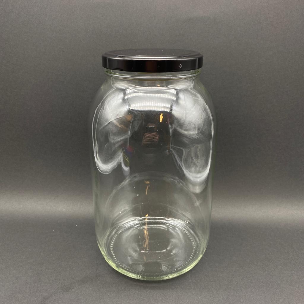 3000 CC CAM KAVANOZ - SİYAH METAL KAPAKLI - 3 LİTRE CAM KAVANOZ - TURŞU VE ZEYTİN KURUMUNDA KULLANILABİLİR
