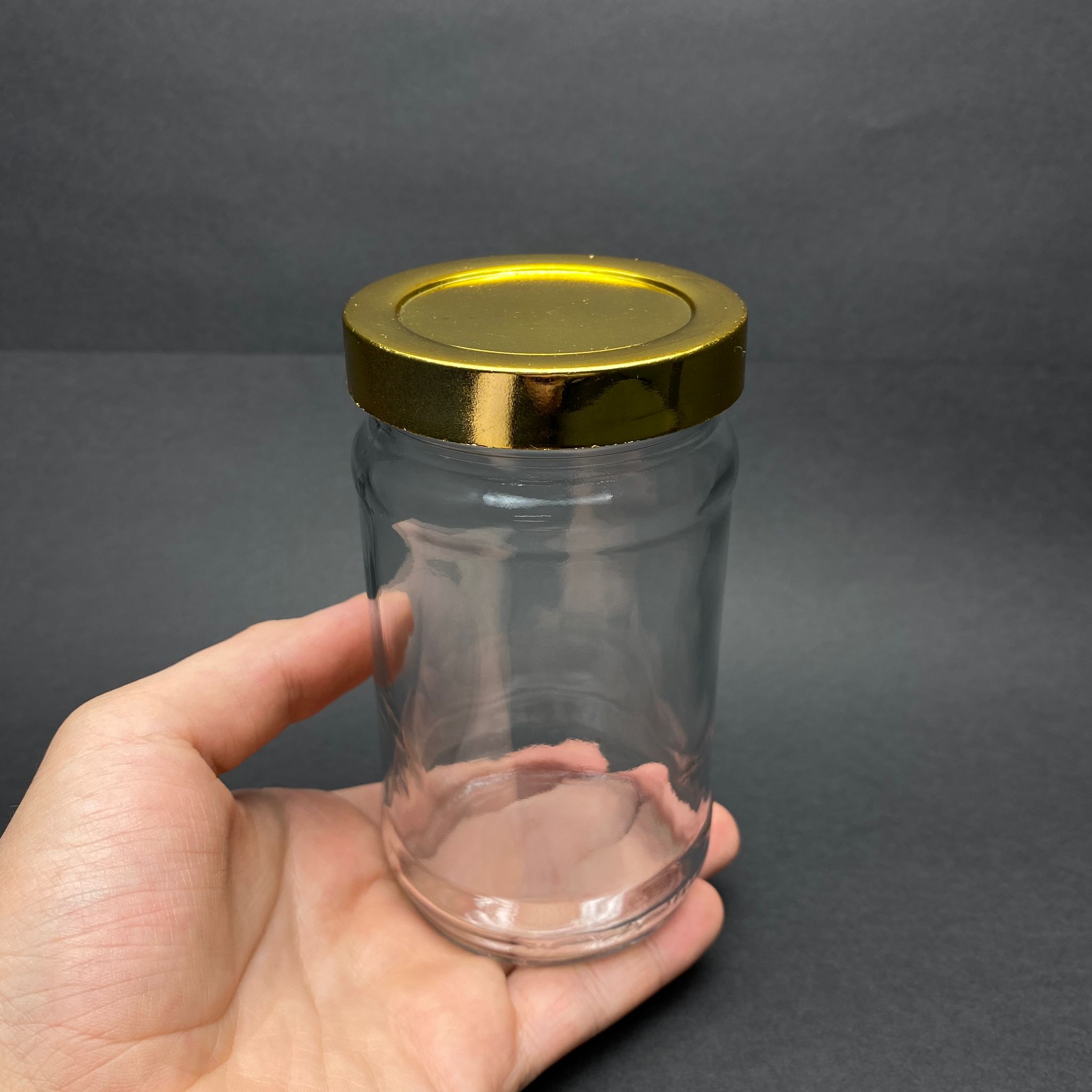 320 CC STANDART KAVANOZ - GOLD KAPLAMALI PLASTİK DERİN KAPAKLI - 320 ML CAM KAVANOZ