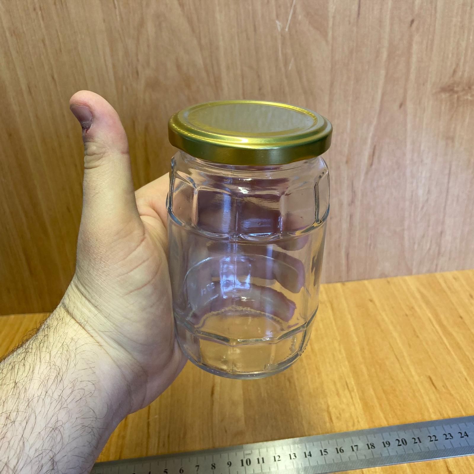 370 CC FIÇI KAVANOZ - GOLD METAL KAPAKLI - 370 ML FIÇI TİPİ CAM KAVANOZ