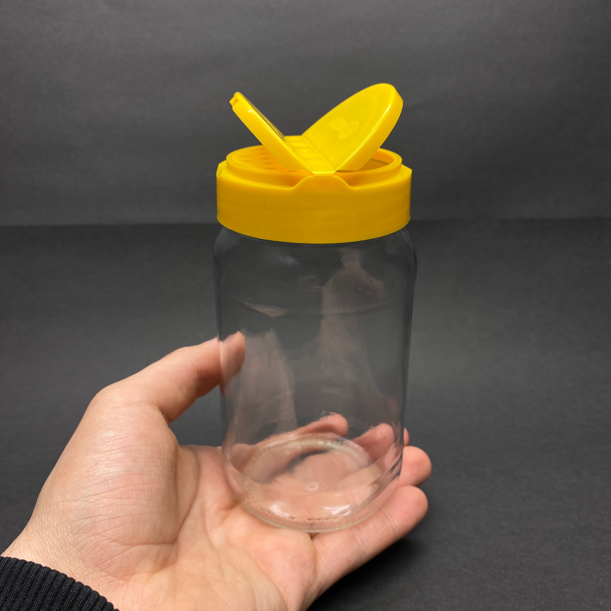380 CC CAM UCUZ BAHARATLIK KAVANOZ - 380 ML UCUZ BAHARAT KAVANOZU - SARI AÇILIR KAPANIR KAPAKLI