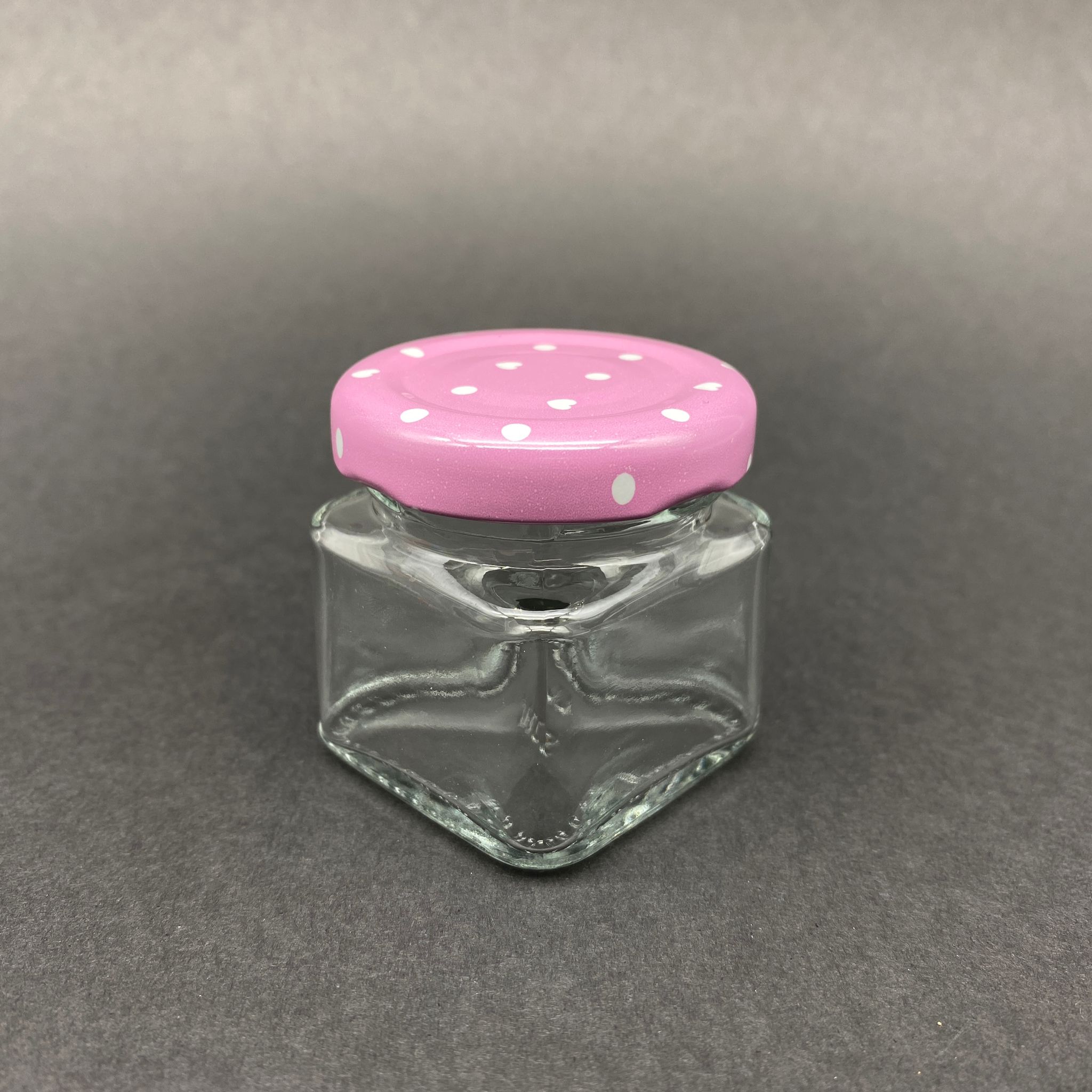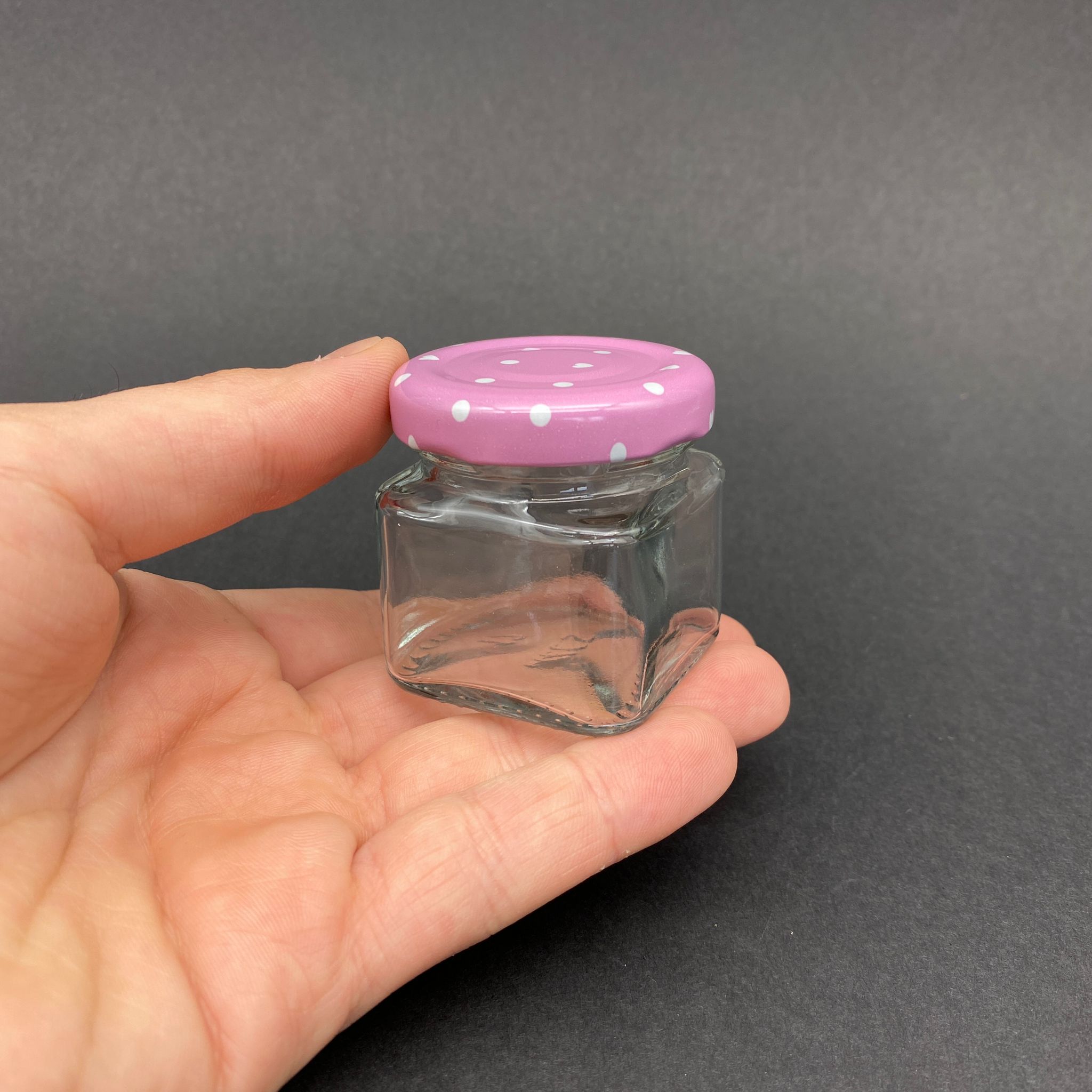 40 CC KARE KAVANOZ - PEMBE METAL KAPAKLI - 40 ML KÖŞELİ TİP CAM KAVANOZ