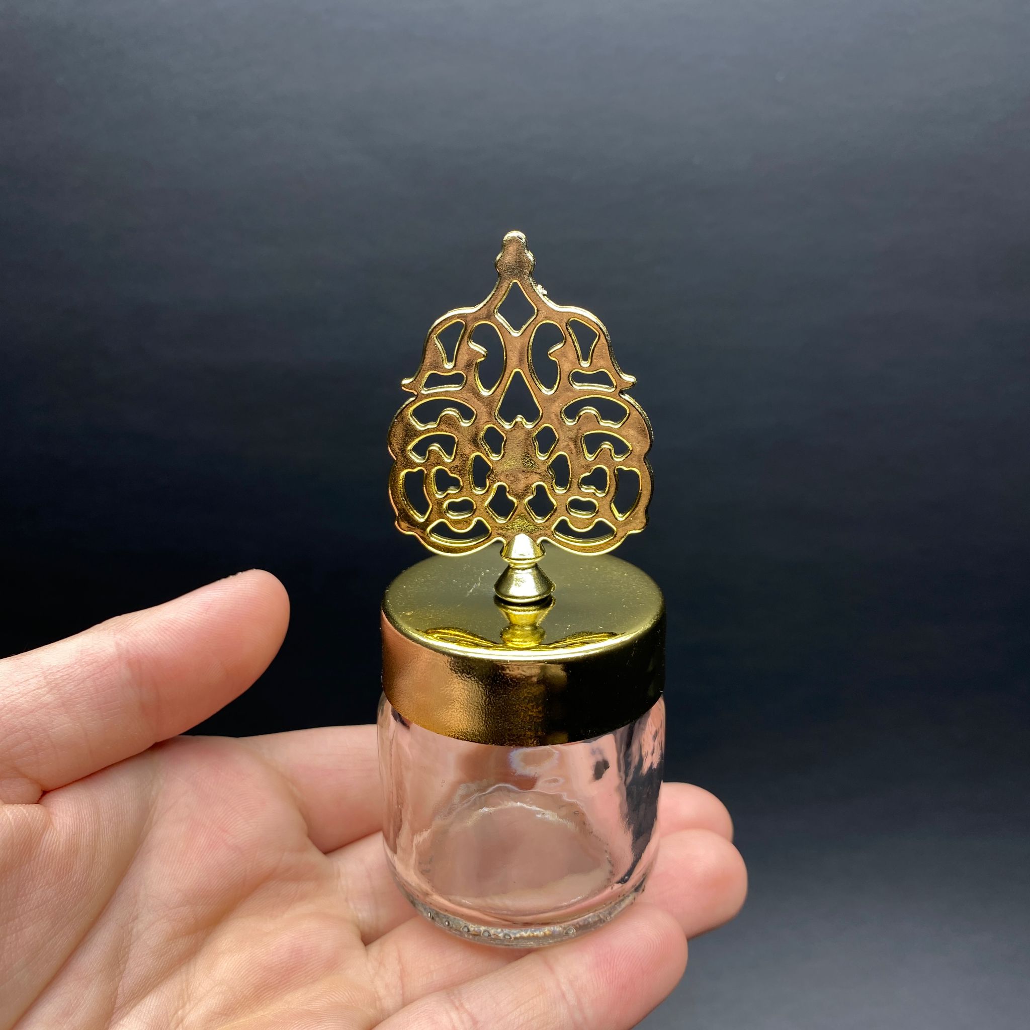 40 CC MİNİ KAVANOZ - GOLD KAPLAMALI GÜNEŞ TEPELİKLİ KUBBELİ TUĞRALI KAPAK - 40 ML STANDART CAM KAVANOZ