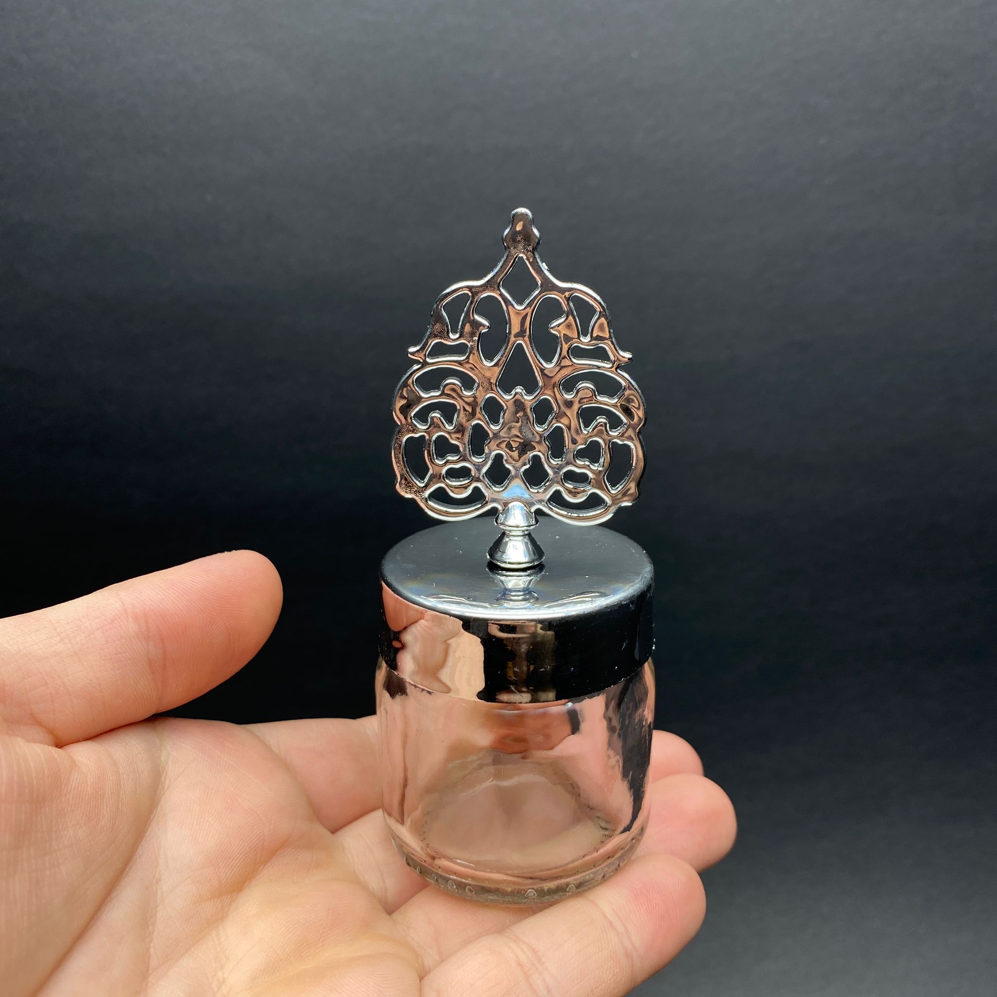40 CC MİNİ KAVANOZ - GÜMÜŞ KAPLAMALI GÜNEŞ TEPELİKLİ KUBBELİ TUĞRALI KAPAK - 40 ML STANDART CAM KAVANOZ