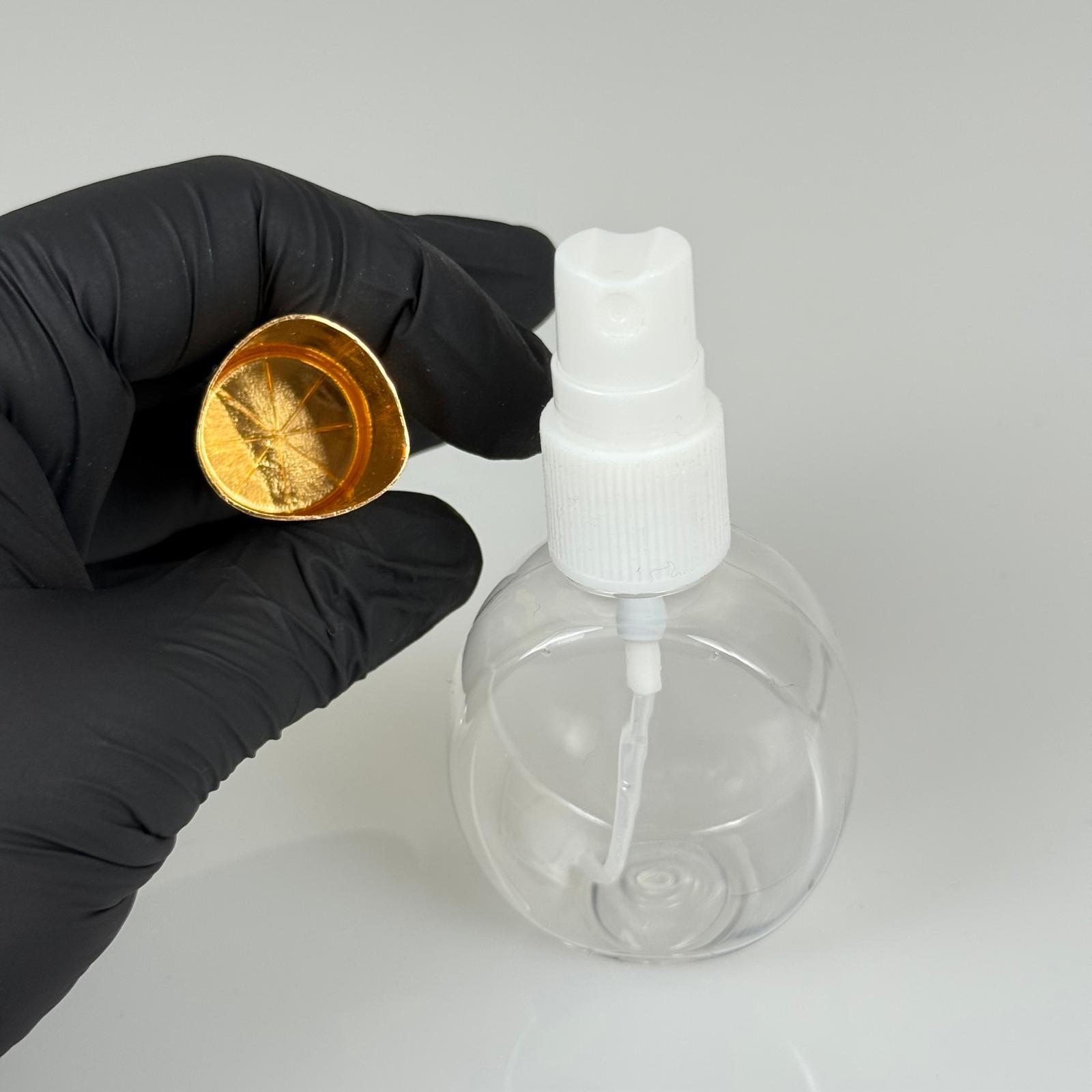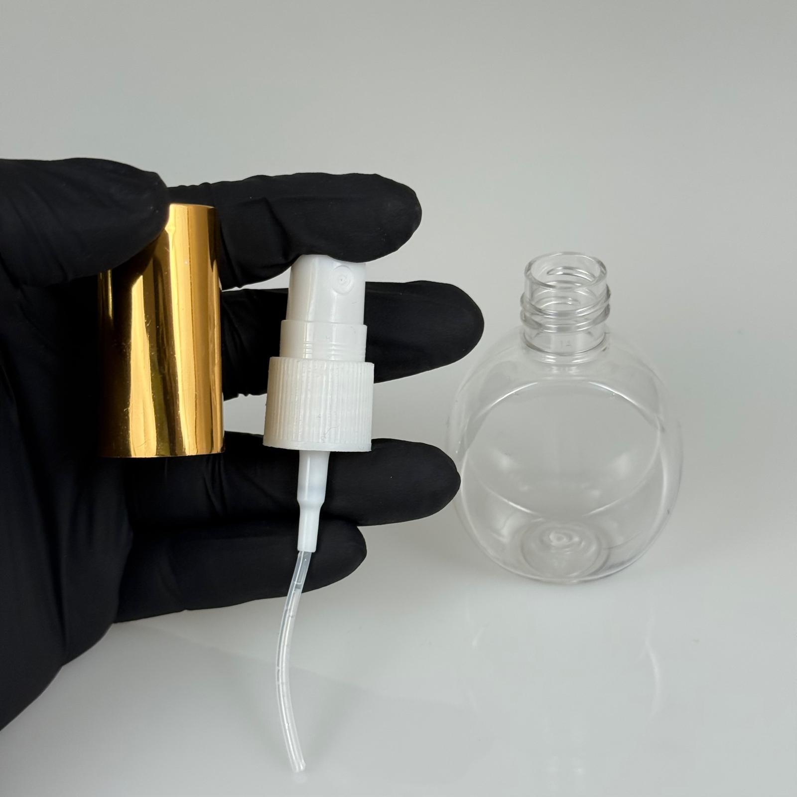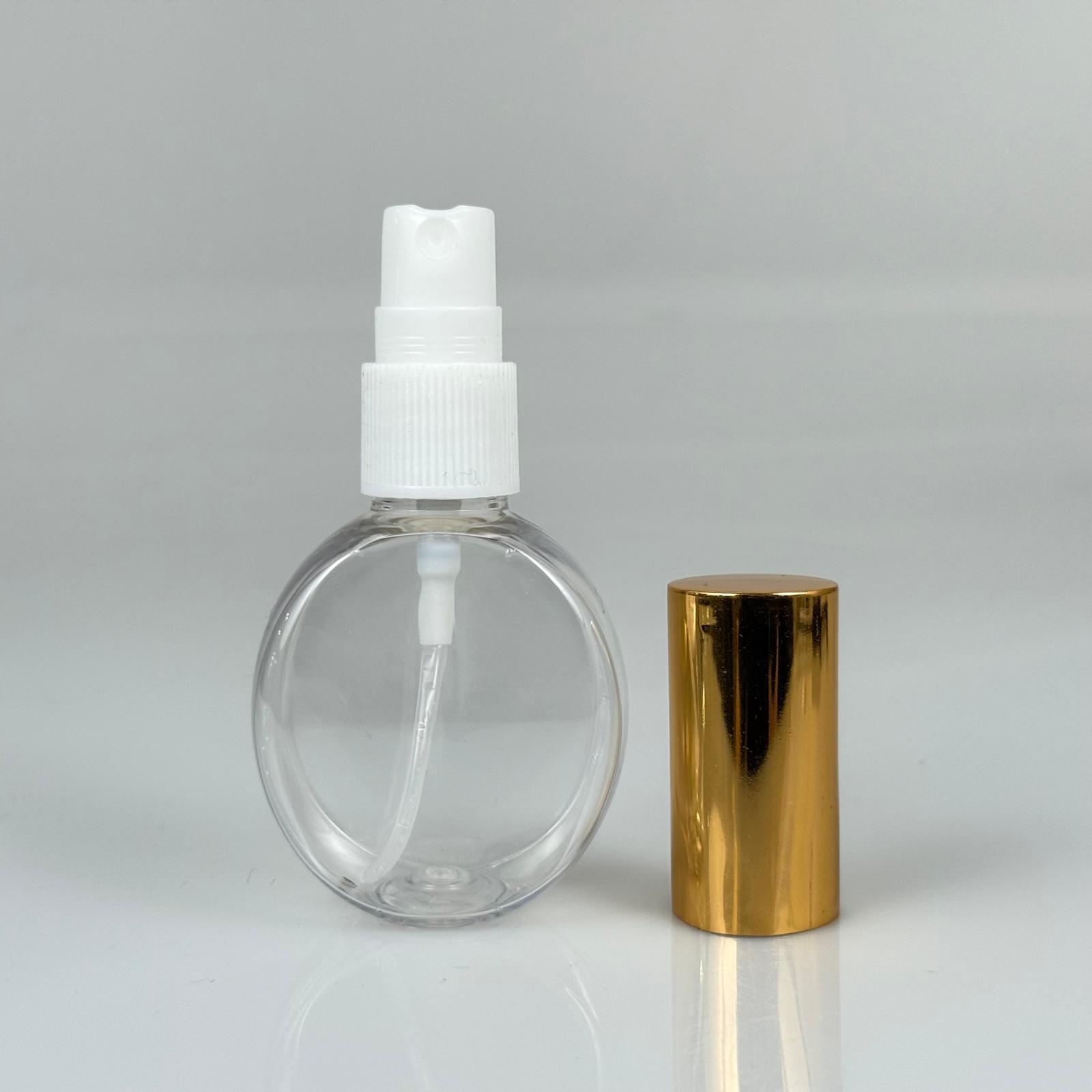 40 ML PET KOLONYA, PARFÜM VB ŞİŞELERİ - METAL ALÜMİNYUM GOLD KAPAK + VİDALI SPREY + 40 CC YUVARLAK ŞİŞE SET TAKIM