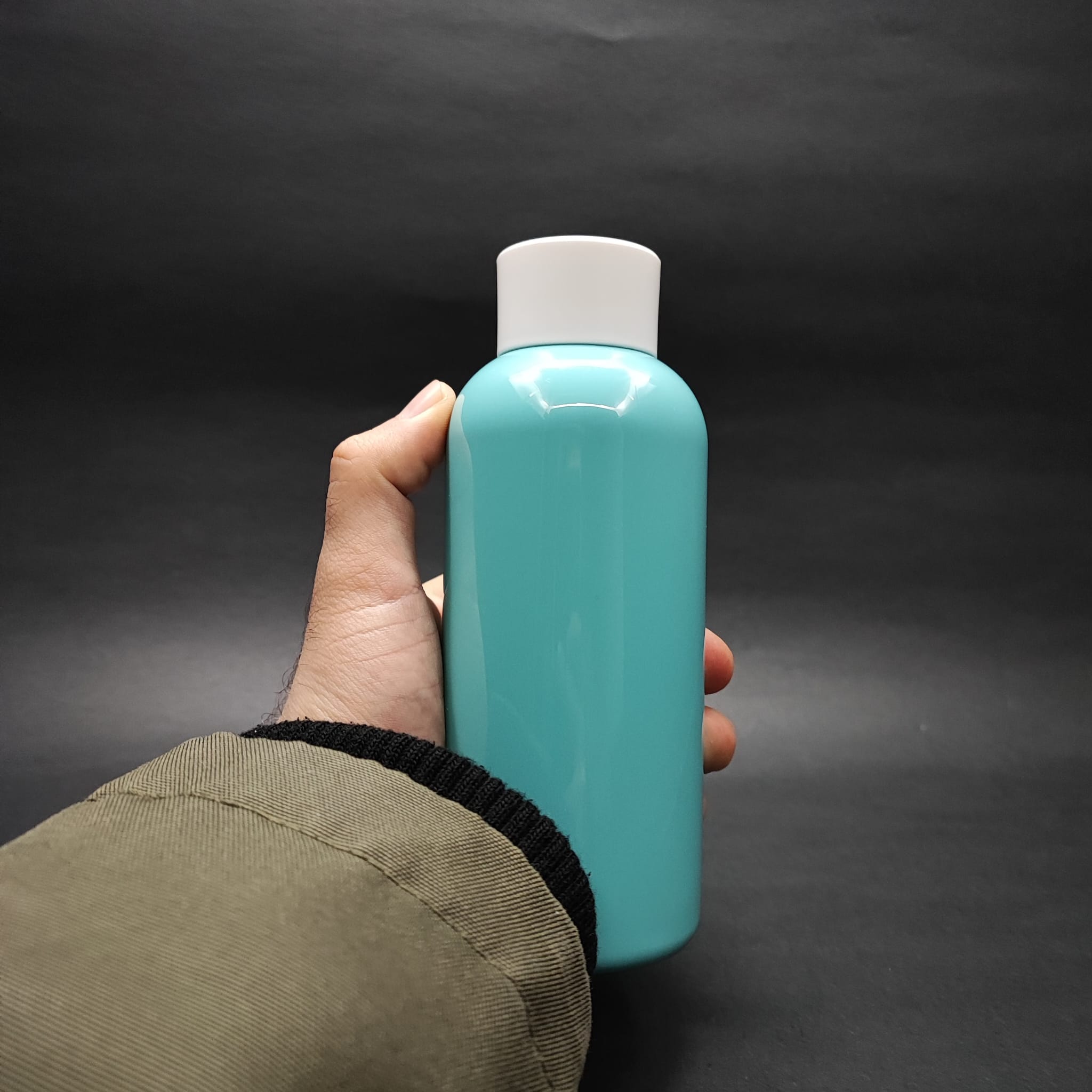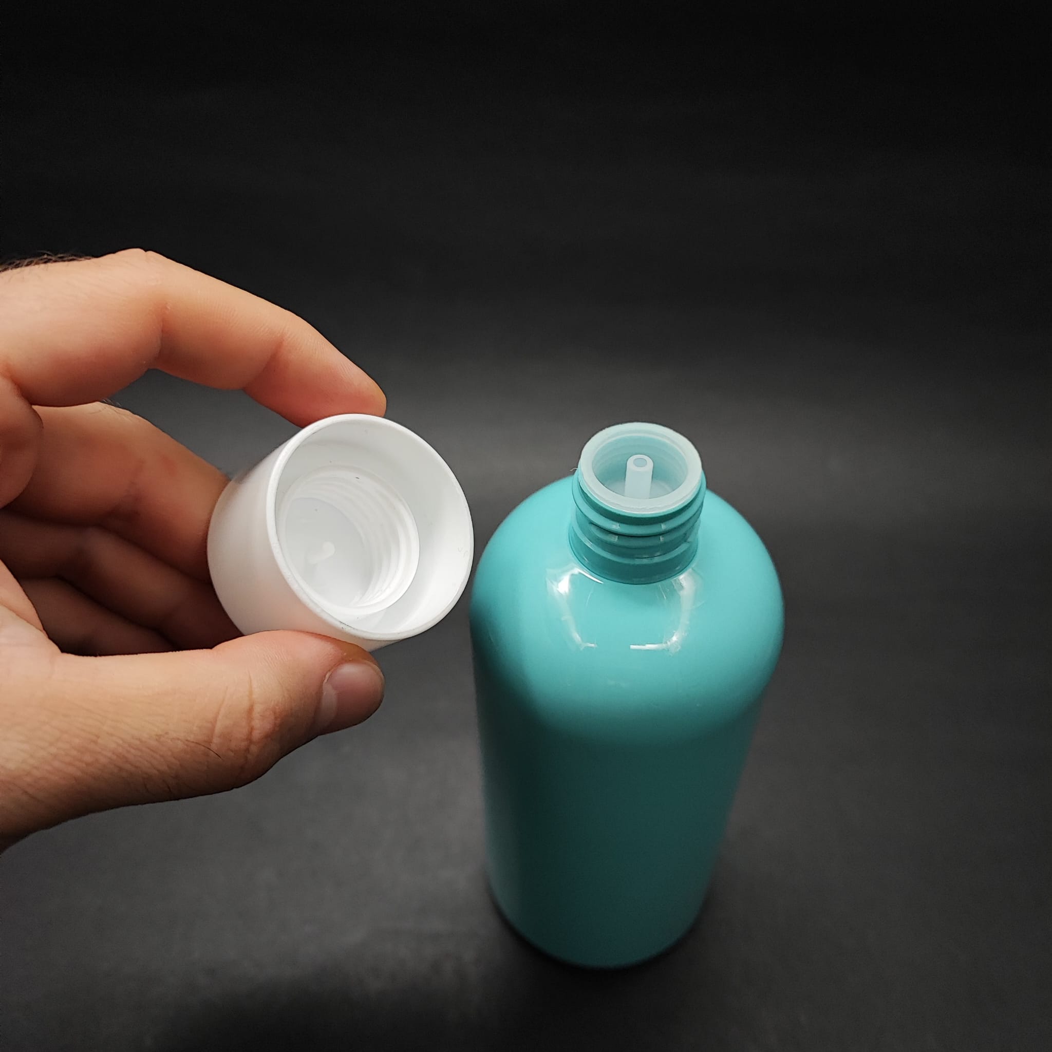 400 CC OVAL BOYUNLU UZUN SİLİNDİR PET ŞİŞE (30 GR) - BEYAZ KOLONYA LOSYON KAPAK + TIPA - 400 ML PLASTİK ŞİŞE - TURKUAZ