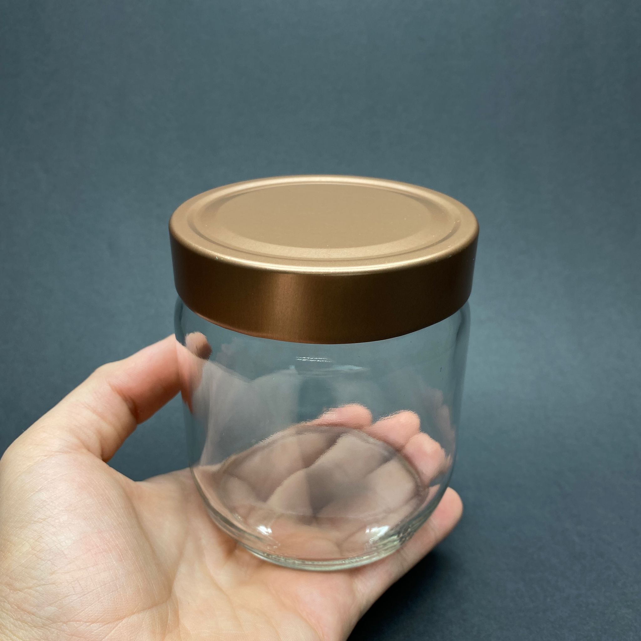 425 CC CAM KAVANOZ - DERİN BRONZ LÜKS METAL KAPAKLI - 425 ML CAM KAVANOZ