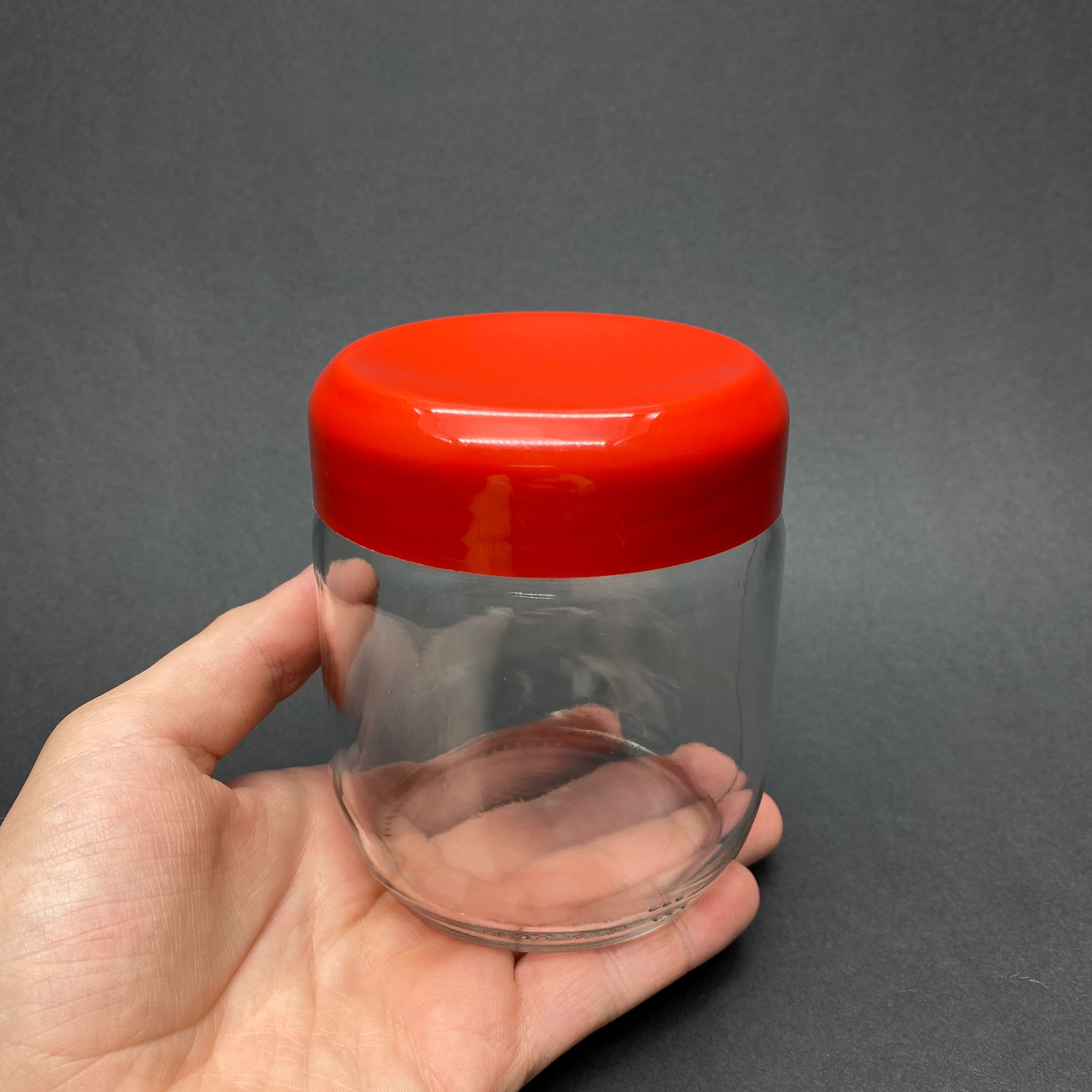 425 CC CAM KAVANOZ - KIRMIZI PLASTİK KAPAKLI - 425 ML CAM KAVANOZ