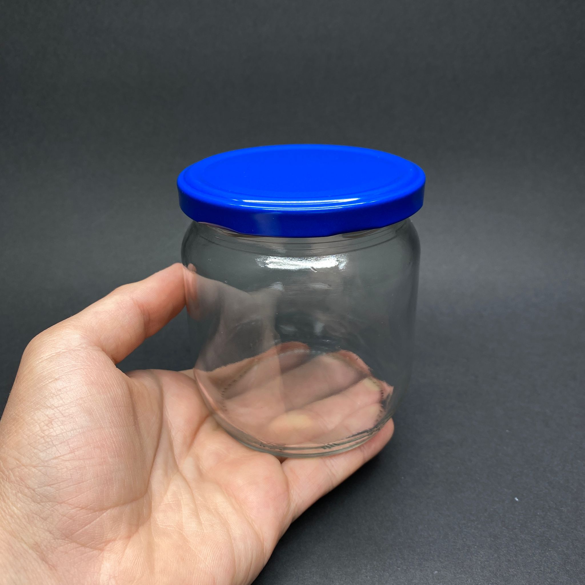 425 CC CAM KAVANOZ - KOYU MAVİ KAPAKLI - 425 ML CAM KAVANOZ
