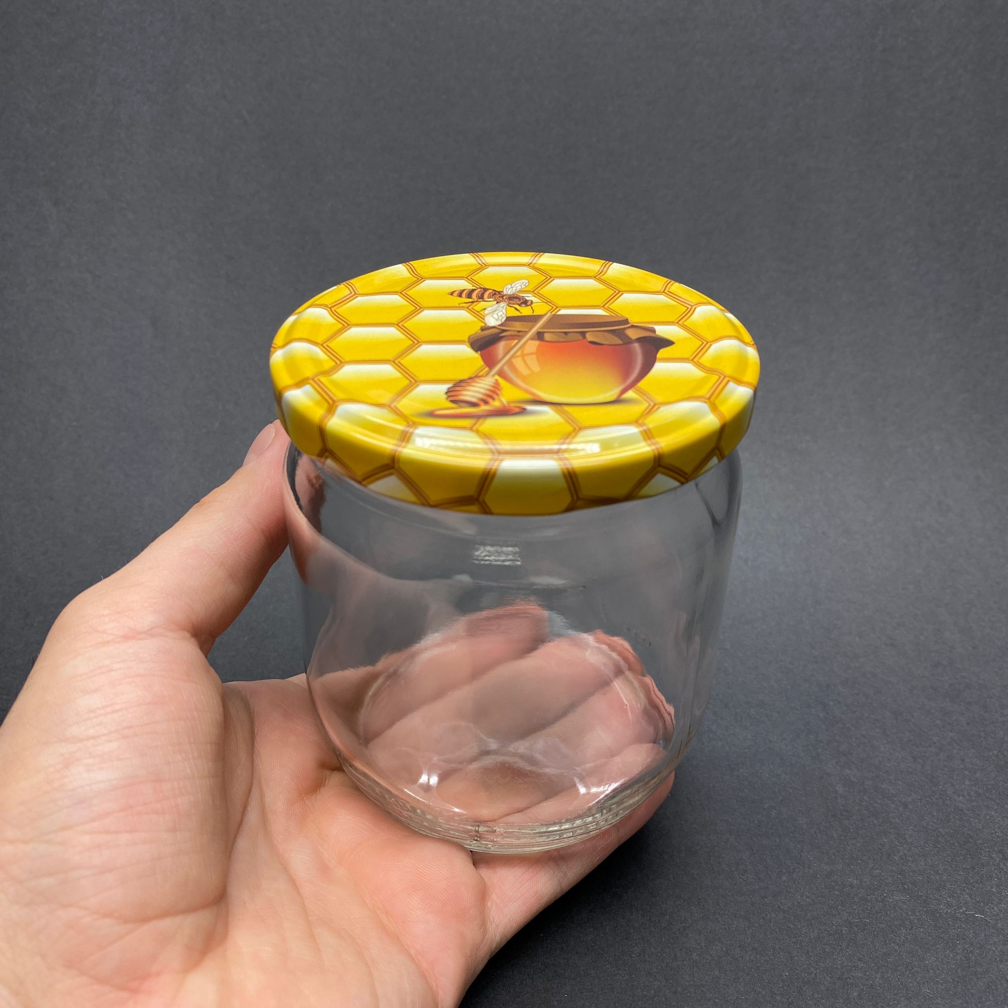 425 CC CAM KAVANOZ - PETEK/BAL DESENLİ METAL KAPAKLI - 425 ML CAM KAVANOZ - KONSERVE KAVANOZU