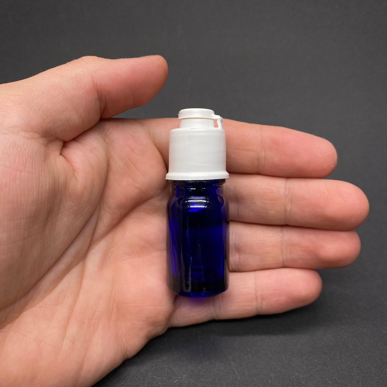 5 CC MAVİ CAM ŞİŞE - BEYAZ FLİPTOP KAPAKLI - 5 ML MAVİ CAM ŞİŞE