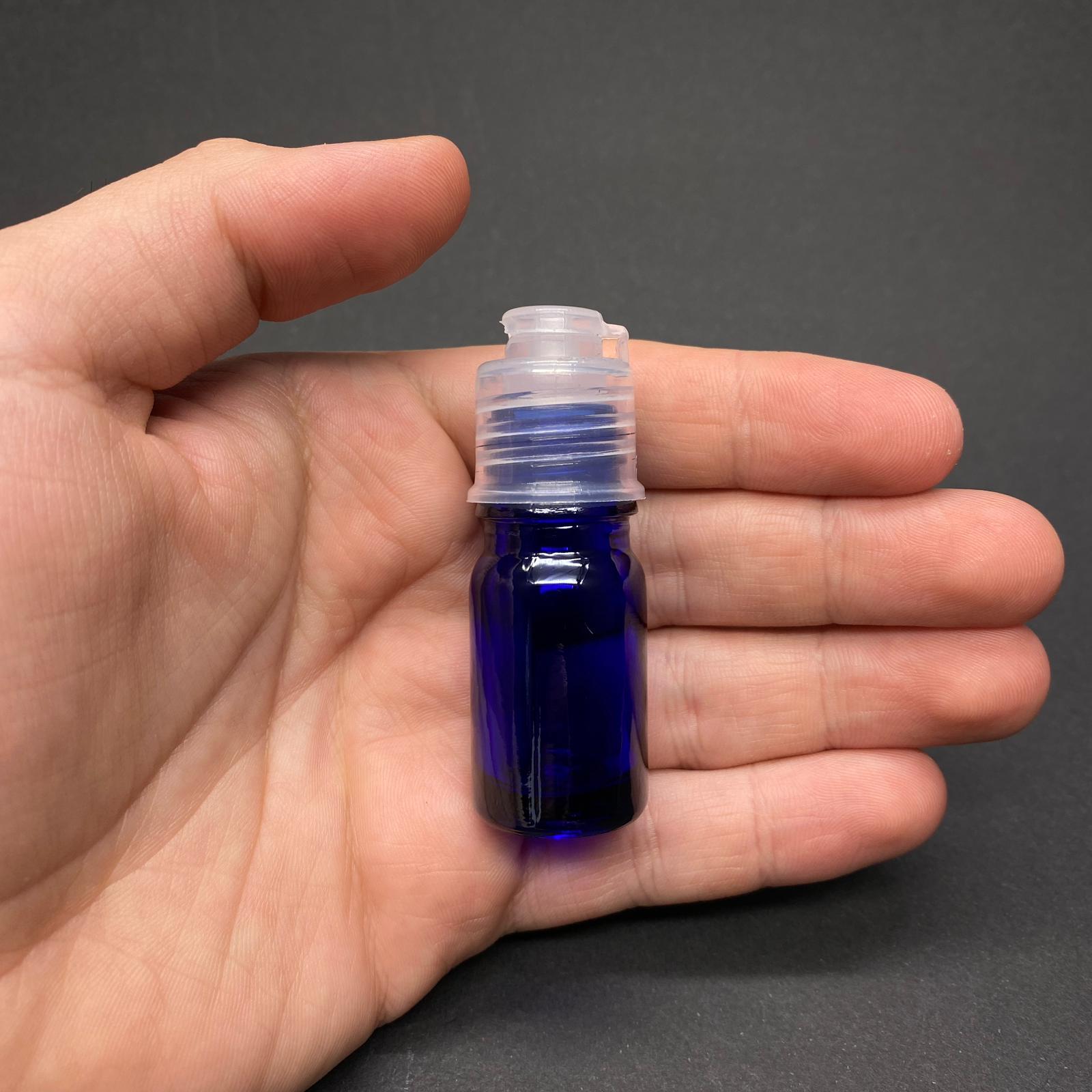 5 CC MAVİ CAM ŞİŞE - ŞEFFAF FLİPTOP KAPAKLI - 5 ML MAVİ CAM ŞİŞE