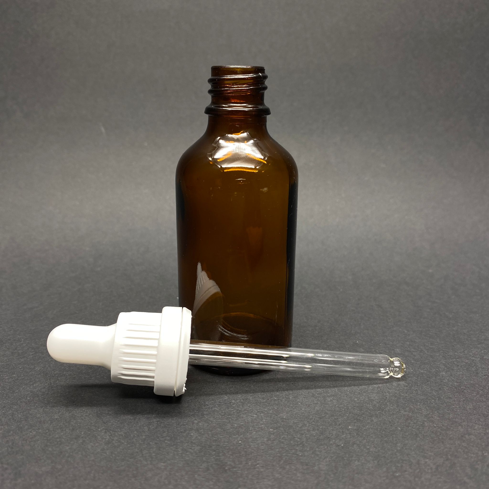 50 CC AMBER CAM DAMLALIKLI ŞİŞE - BEYAZ EMZİK - BEYAZ PLASTİK KİLİTLİ KAPAK - 50 ML KAHVERENGİ CAM DAMLALIKLI ŞİŞE