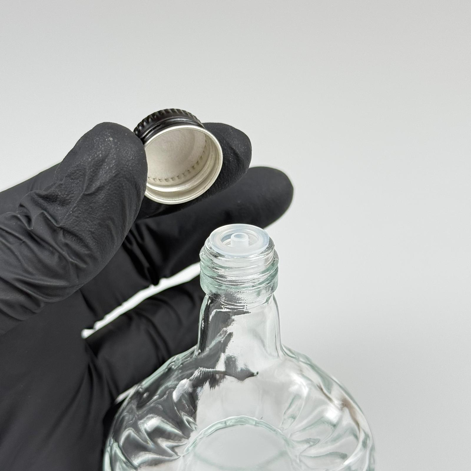 50 CC BOĞAZLI YASSI CAM ŞİŞE - SİYAH METAL KAPAKLI KOLONYA TIPALI - 50 ML PRESTİJLİ ŞİŞE