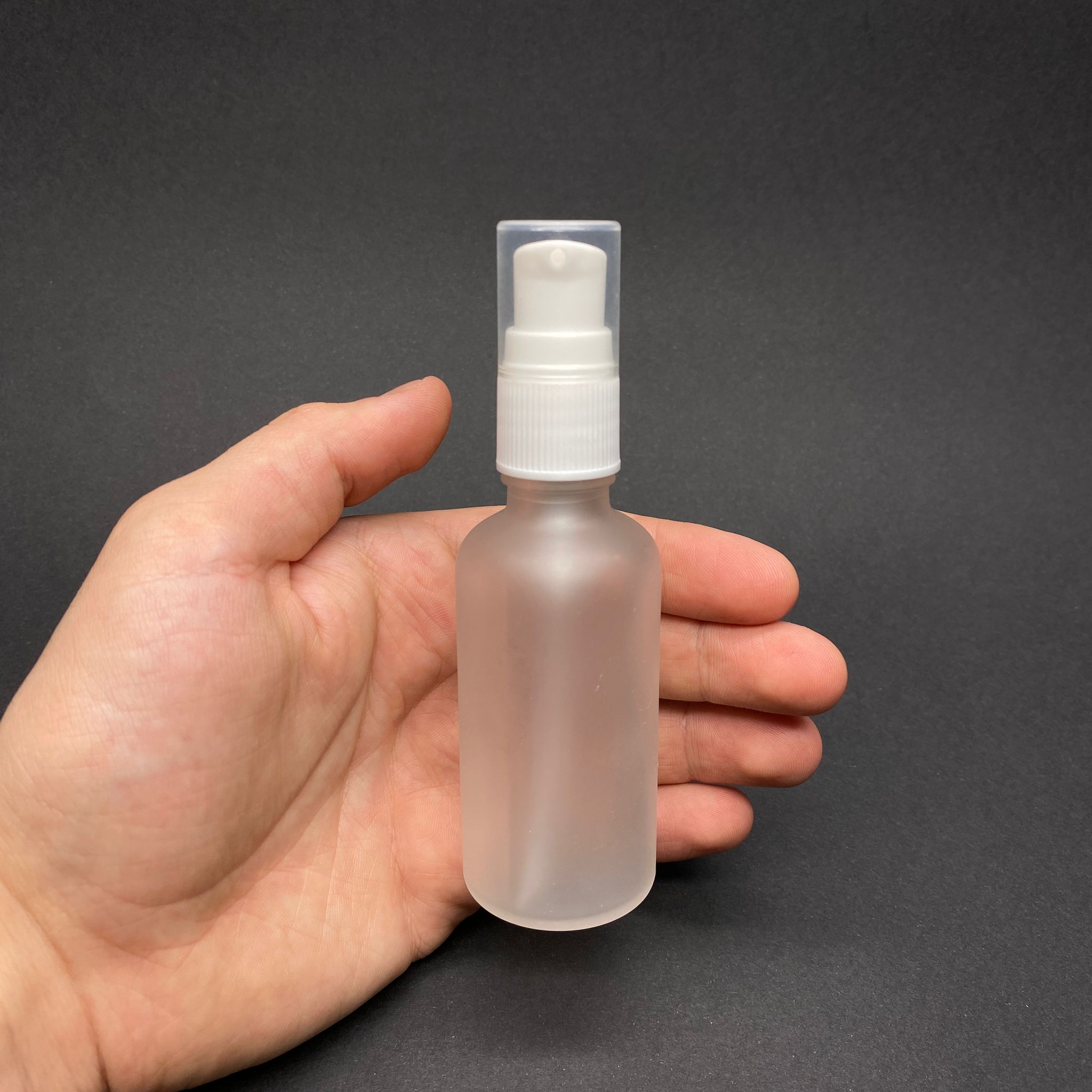 50 CC BUZLU CAM ŞİŞE - BEYAZ LOSYON POMPALI (YOĞUN KIVAMLI SIVILAR İÇİN) - 50 ML POMPALI BUZLU ŞİŞE - BUZLU CAM