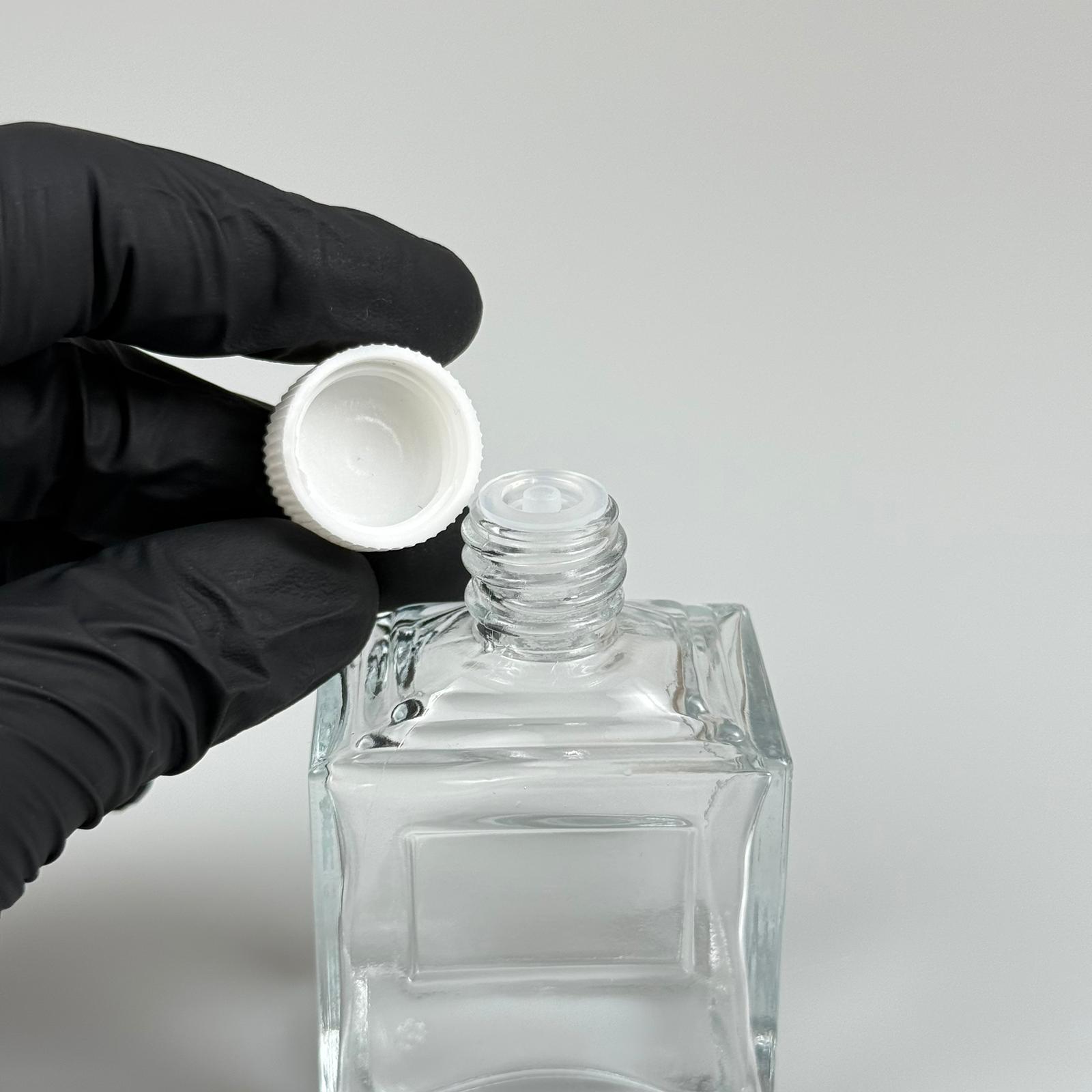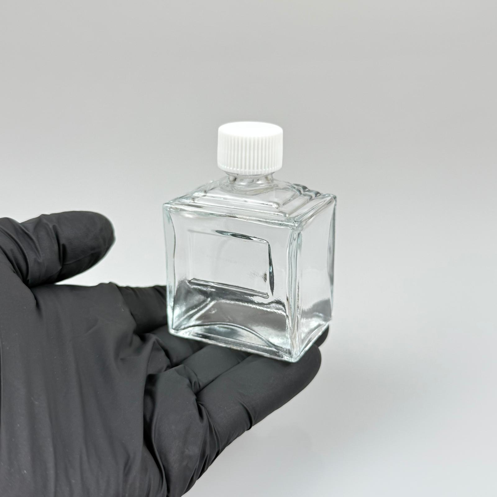 50 CC KÖŞELİ PRİZMA CAM ŞİŞE - BEYAZ PLASTİK KAPAKLI KOLONYA TIPALI - 50 ML PRESTİJLİ ŞİŞE