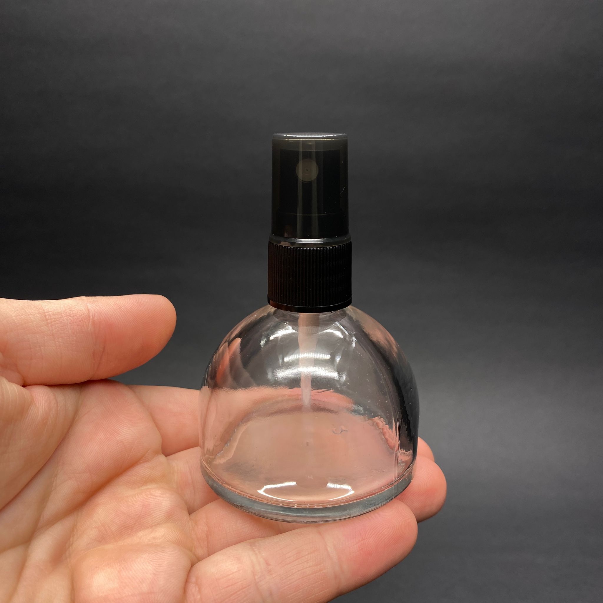 50 CC KUBBE CAM ŞİŞE + SİYAH SPREY FISFIS - 50 ML HEDİYELİK CAM KOLONYA ŞİŞESİ - DÜĞÜN, NİŞAN, SÖZ, KINA, CENAZE, PROMOSYON İÇİN HEDİYELİK KOLONYA ŞİŞELERİ