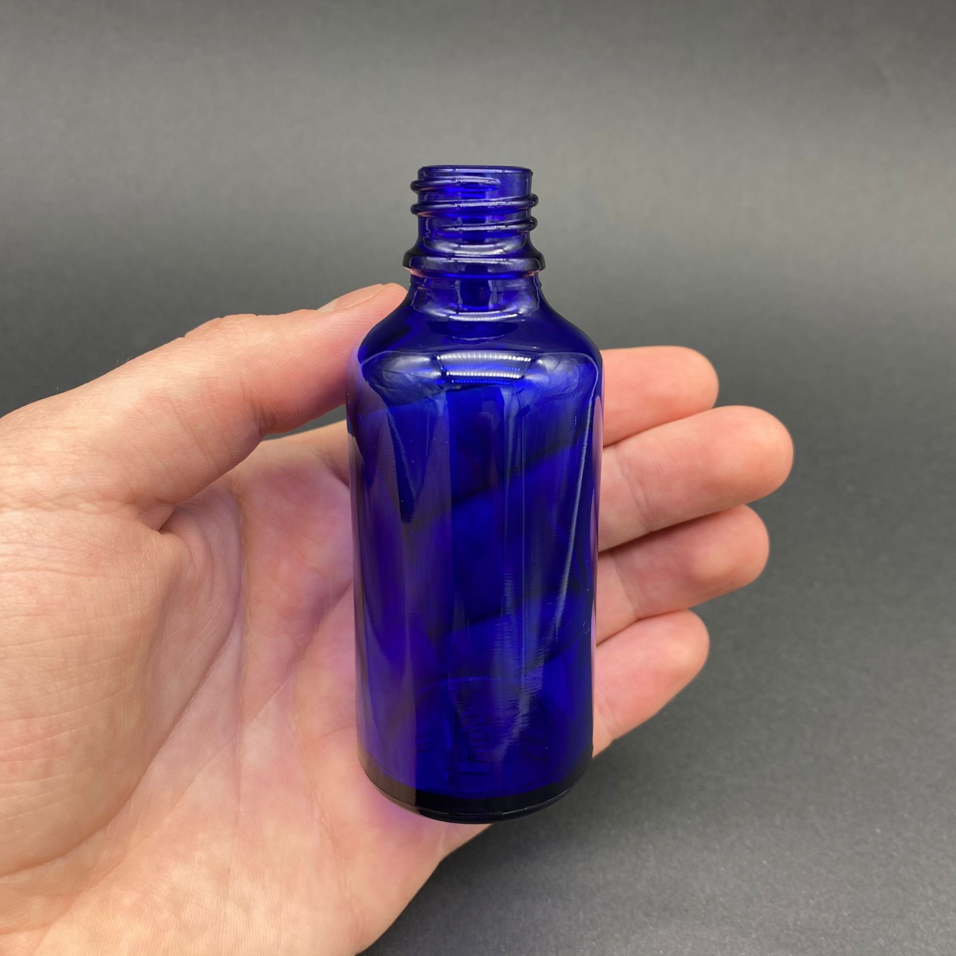 50 CC MAVİ CAM ŞİŞE KAPAKSIZ (18 AĞIZ)