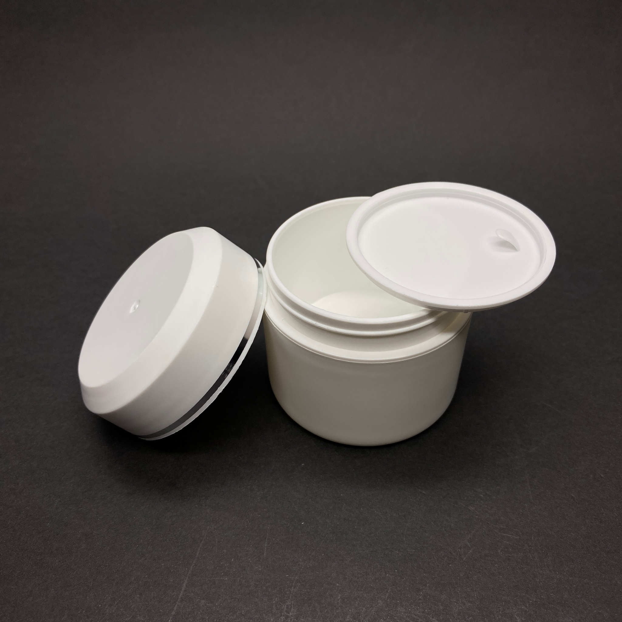 50 CC NOBEL KREM KAVANOZU - KAPAKLI - İÇ TIPALI - BEYAZ - GÜMÜŞ YALDIZLI KREM KUTUSU - KOZMETİK AMBALAJ