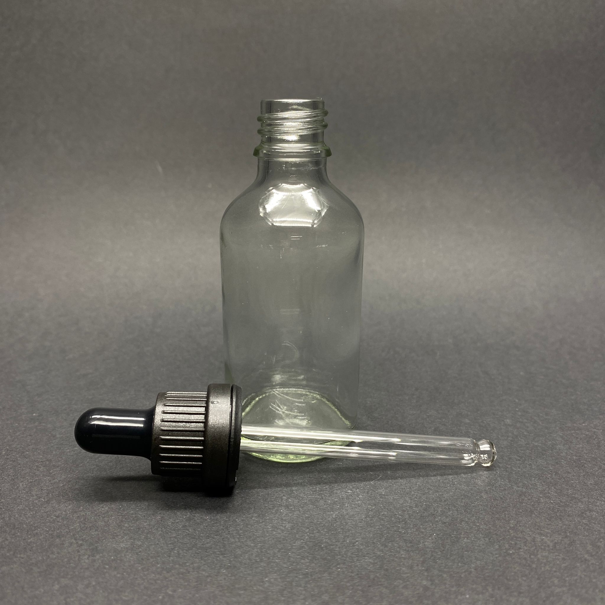 50 CC ŞEFFAF CAM DAMLALIKLI ŞİŞE - SİYAH EMZİK - SİYAH KİLİTLİ PLASTİK KAPAK - 50 ML SAYDAM CAM DAMLALIKLI ŞİŞE