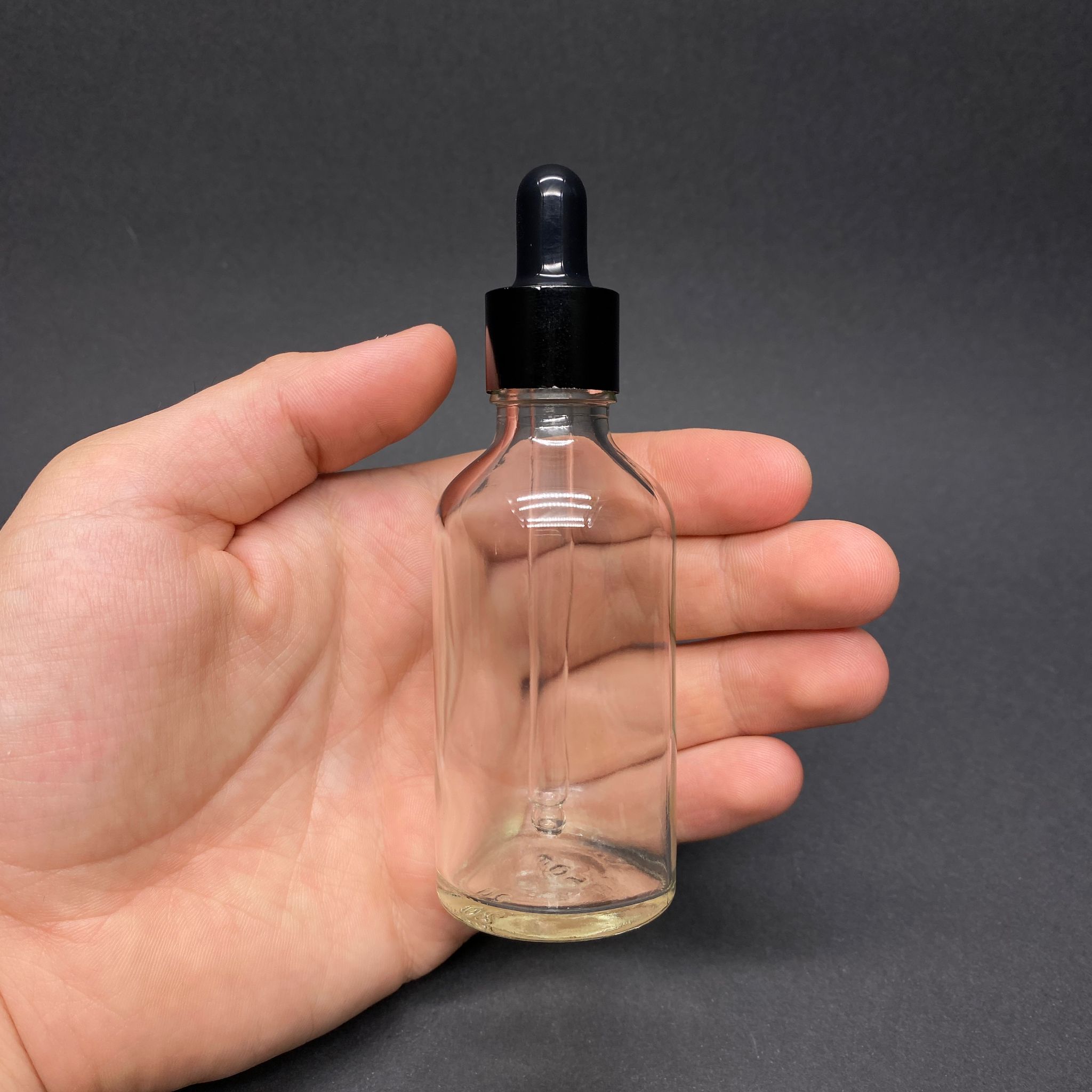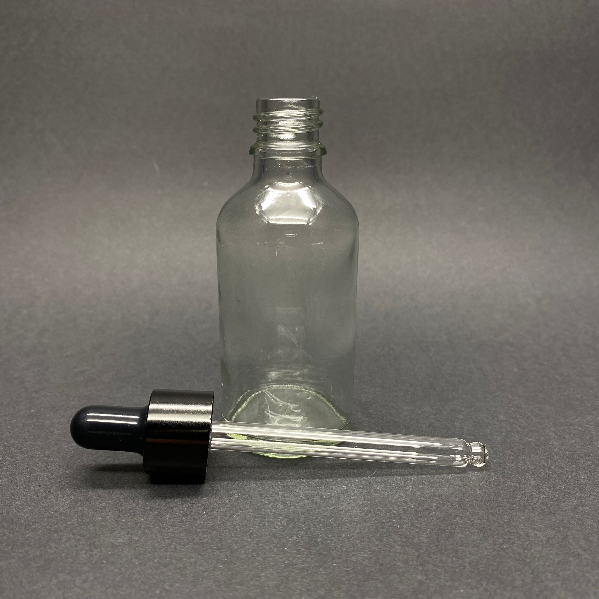 50 CC ŞEFFAF CAM DAMLALIKLI ŞİŞE - SİYAH EMZİK - SİYAH METALİK KAPAK - 50 ML SAYDAM CAM DAMLALIKLI ŞİŞE
