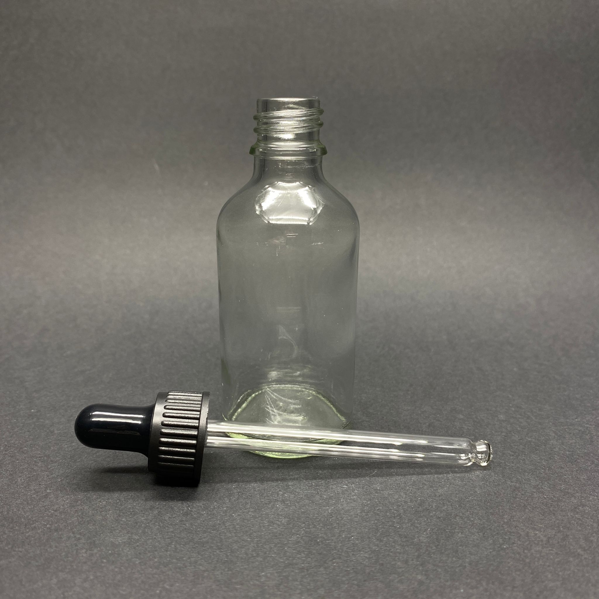 50 CC ŞEFFAF CAM DAMLALIKLI ŞİŞE - SİYAH EMZİK - SİYAH PLASTİK KAPAK - 50 ML SAYDAM CAM DAMLALIKLI ŞİŞE