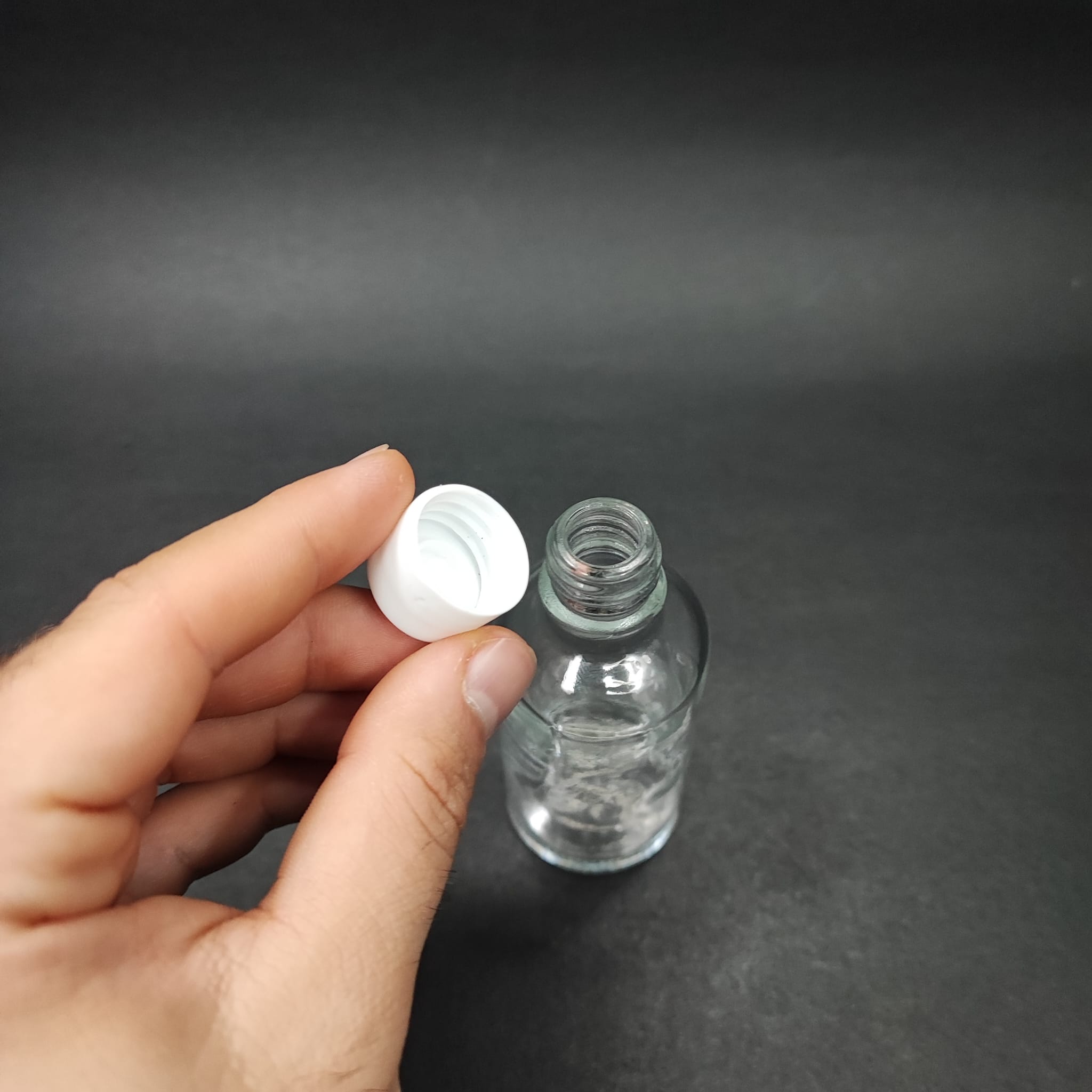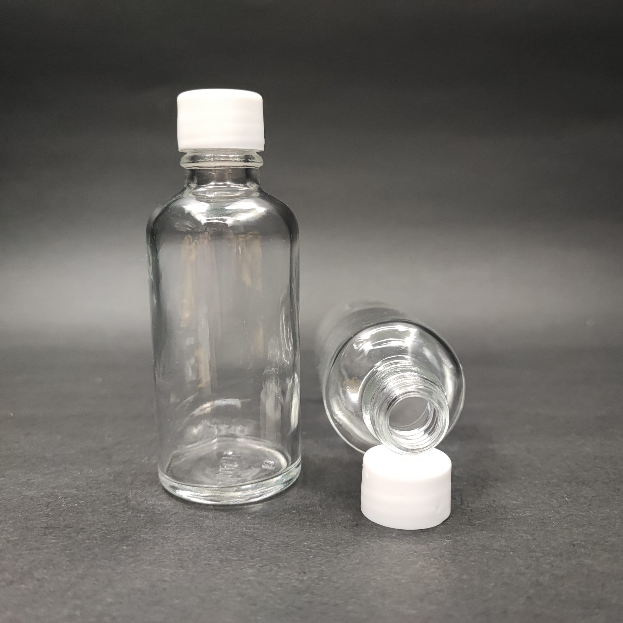 50 CC ŞEFFAF CAM ŞİŞE + KENDİNDEN CONTALI SIZDIRMAZ BEYAZ KAPAK - 50 ML KAPAKLI CAM ŞİŞE