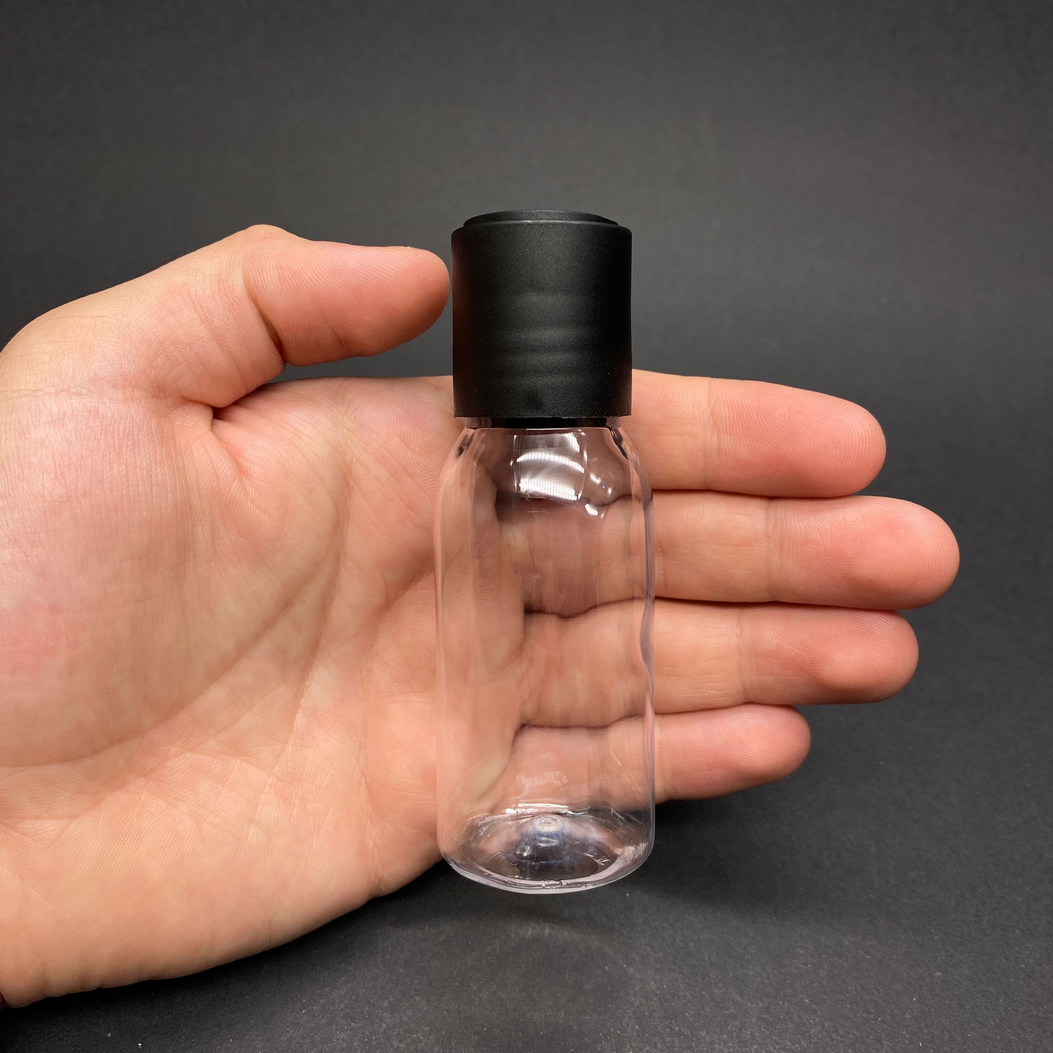 50 CC ŞEFFAF OVAL BOYUNLU SERT PET ŞAMPUAN ŞİŞESİ - 50 ML SİYAH DİSKTOP ŞAMPUAN KAPAKLI