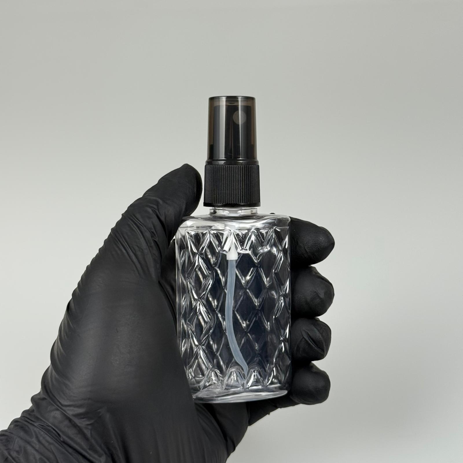 50 CC ŞEFFAF PET KÖŞELİ PARFÜM ŞİŞESİ - SİYAH SPREYLİ - 50 ML PLASTİK PARFÜM - KOLONYA ŞİŞESİ