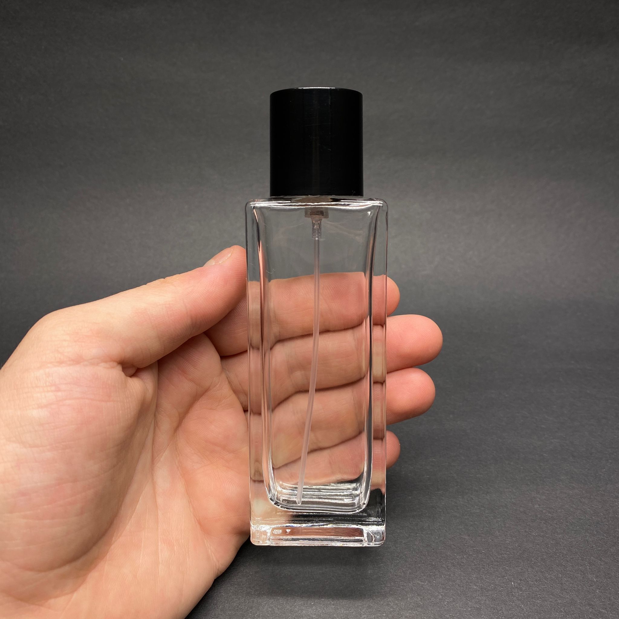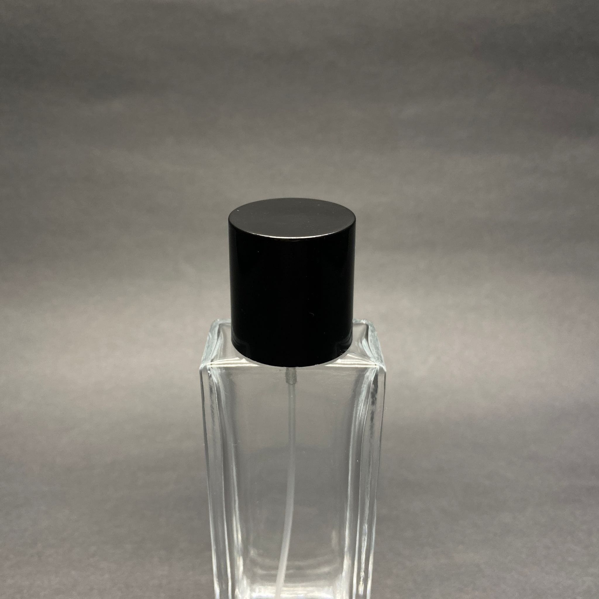 50 ML DİKDÖRTGEN MODEL FORTUNE UZUN PARFÜM ŞİŞESİ - GÜMÜŞ METAL SPREYLİ + SİYAH KAPAKLI (AĞIZ 15 MM GEÇME KOLAY KAPAMA)