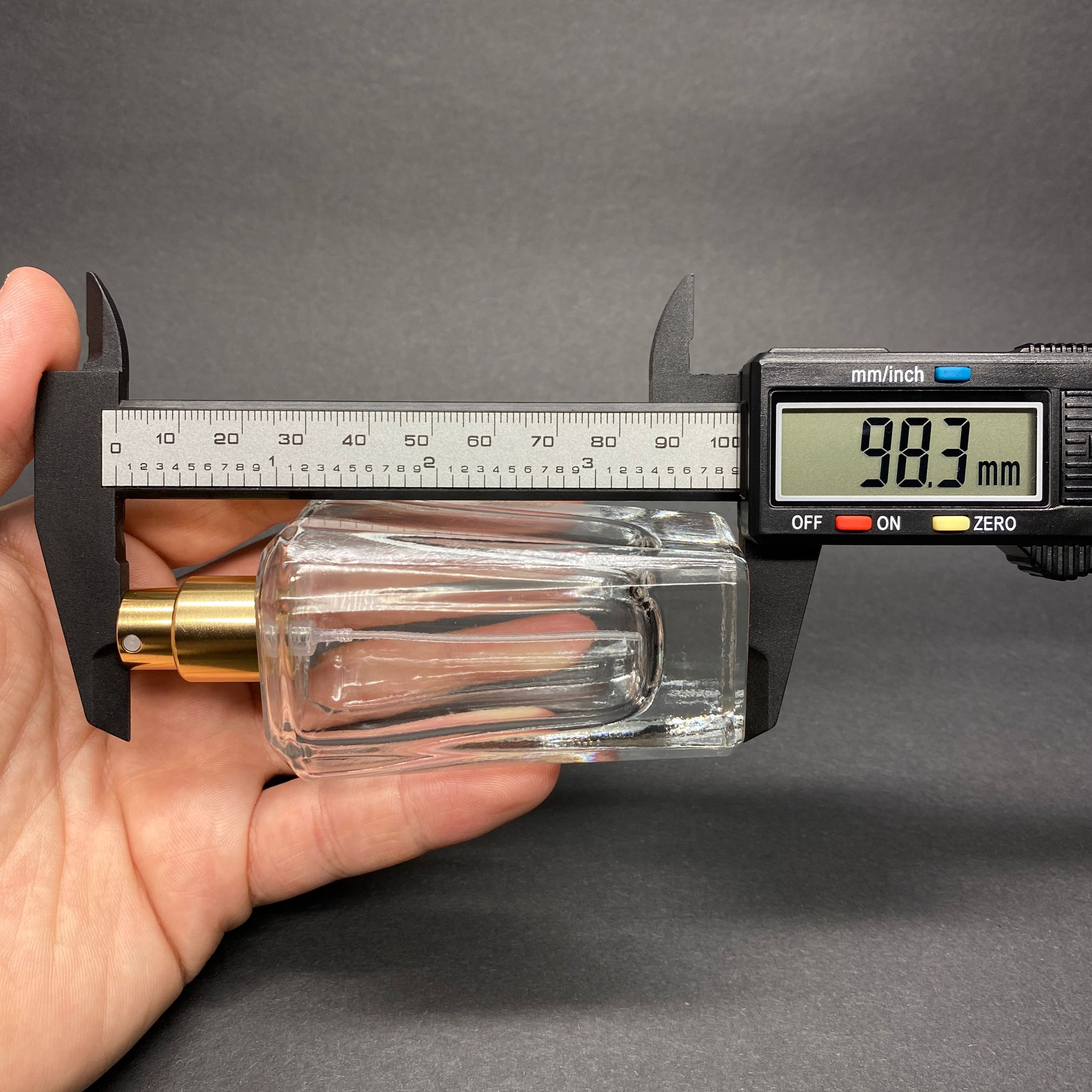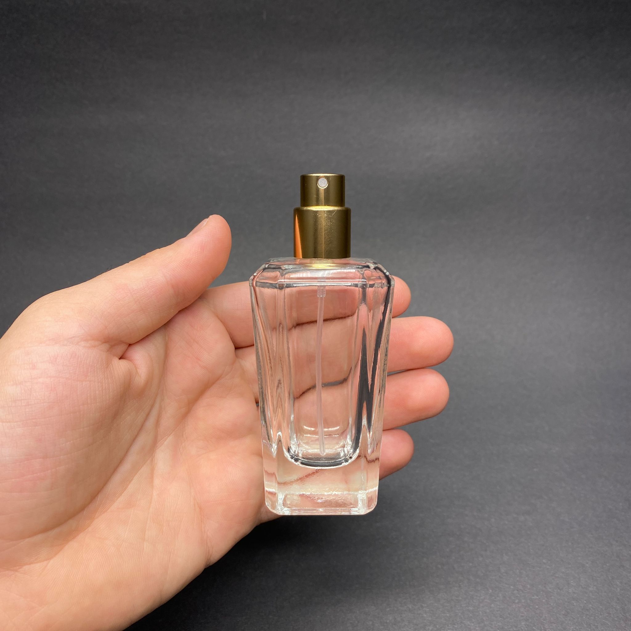 50 ML KÖŞELİ MODEL MİRA PARFÜM ŞİŞESİ - GOLD METAL SPREYLİ (AĞIZ 15 MM GEÇME KOLAY KAPAMA)