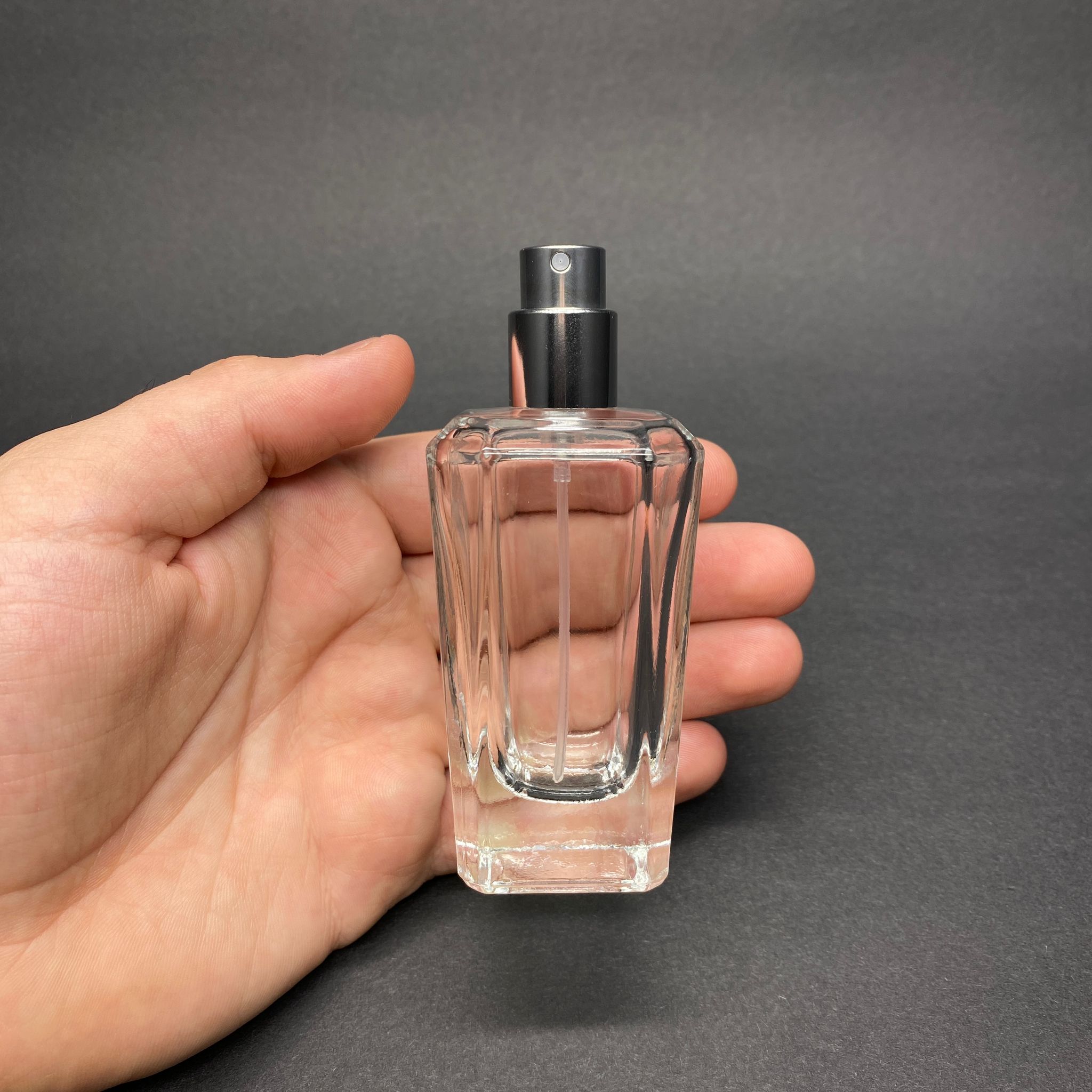 50 ML KÖŞELİ MODEL MİRA PARFÜM ŞİŞESİ - GÜMÜŞ METAL SPREYLİ (AĞIZ 15 MM GEÇME KOLAY KAPAMA)
