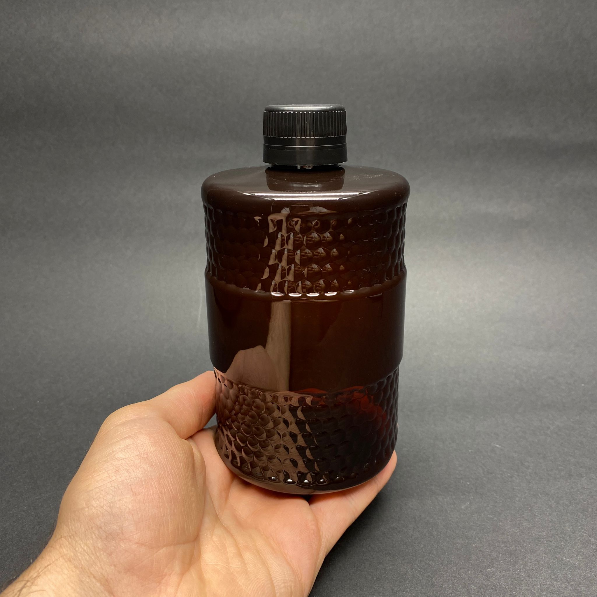 500 CC DESENLİ AMBER PLASTİK ŞİŞE - SİYAH KİLİTLİ KAPAKLI - 500 ML KALIN PLASTİK ŞİŞE